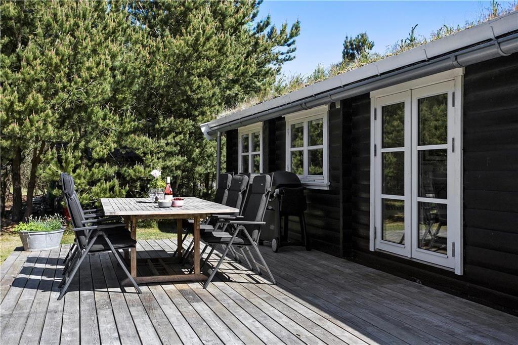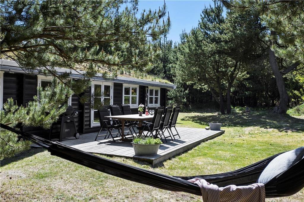 Dieses reizende Ferienhaus liegt wunderbar idyllisch auf einem großen Naturgrundstück in einem Waldgebiet etwas nördlich von Blokhus. Mit etwas Glück können Sie von der offenen Terrasse aus Rehe, Hasen, Füchse und Fasane beobachten, die über Ihr Grundstück streifen. Das Grundstück ist geschlossen und aufgrund der hohen Bäume ringsum liegt das Haus nahezu etwas versteckt. Sie können es sich also völlig ungeniert auf der Terrasse gemütlich machen, ohne Blicke neugieriger Nachbarn oder vorbeilaufender Personen zu fürchten.