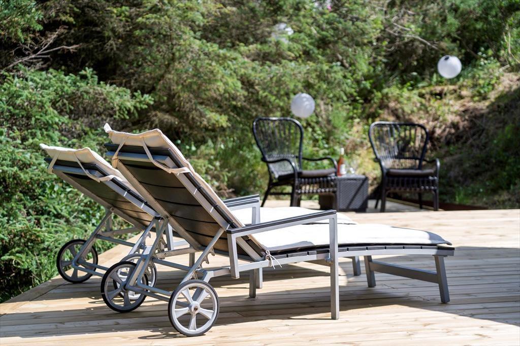 Der größte Star dieses Ferienhauses sind zweifellos die riesigen Terrassenflächen, die das Haus umgeben. Egal, ob ihr euren Morgenkaffee in der Sonne genießen, am Nachmittag sonnenbaden oder ein romantisches Abendessen unter freiem Himmel einnehmen möchtet – es gibt immer den perfekten Platz dafür. Die Terrasse im Osten ist ideal für den Morgen, während die westliche Terrasse perfekt ist, um die letzten Sonnenstrahlen am Abend einzufangen. Die südliche Terrasse gibt euch die Möglichkeit, den ganzen Tag über die Sonnenstrahlen zu genießen, und mit der ungestörten Lage des Hauses könnt ihr ganz für euch sein, ohne an neugierige Blicke denken zu müssen. Hier könnt ihr einfach das Leben in eurer eigenen privaten Oase genießen.