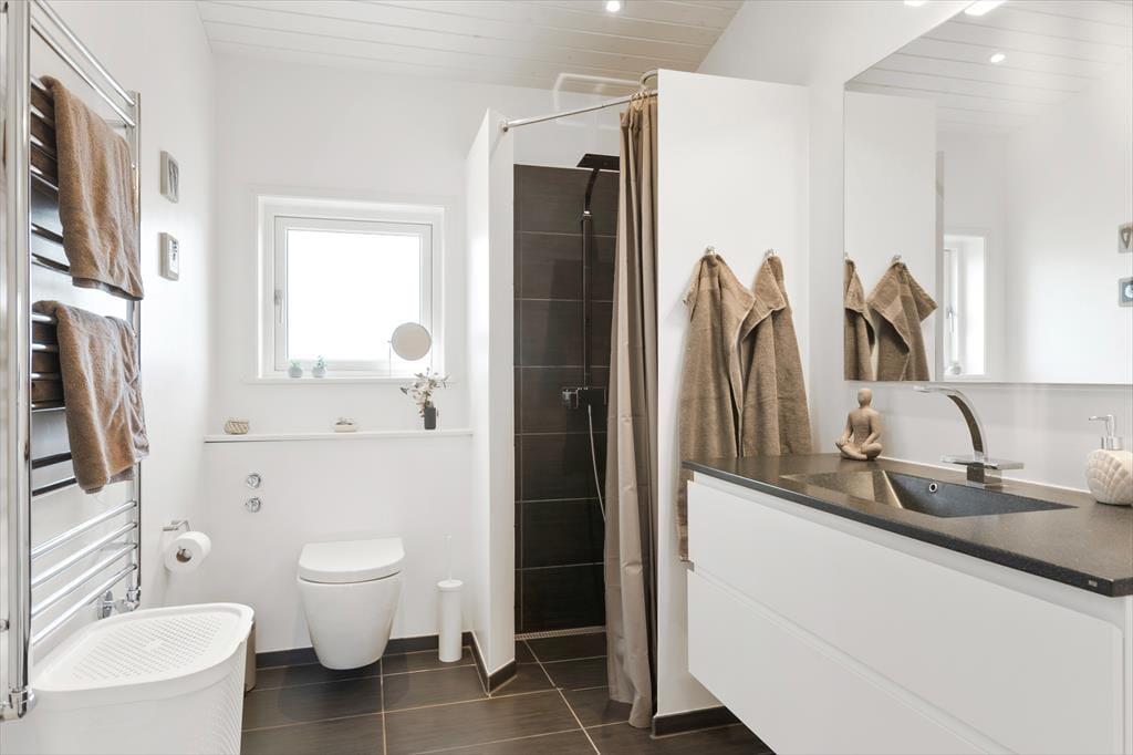 Unmittelbar nach dem ersten Betreten des 96 m² großen Ferienhauses werden Sie sich noch mehr auf Ihre bevorstehenden Urlaubstage freuen. Das im Jahr 2015 erbaute Mietobjekt begeistert mit einer schlichten, einladenden Einrichtung, die durch helle Farbtöne, moderne Einrichtungsgegenstände und zahlreiche tolle Details geprägt wird. Zu Letztgenannten zählt unter anderem der eckige Kaminofen, der es ermöglicht, aus mehreren Richtungen auf das flackernde Feuer zu blicken. Die Dachflächenfenster gewähren in Küche und Essbereich einen sehr schönen Tageslichteinfall. Küche und Wohnraum sind offen miteinander verbunden. Daneben treffen Sie auf einen geräumigen Hauswirtschaftsraum mit einer Waschmaschine. Die 6 Schlafplätze umfassen insgesamt 6 Schlafplätze, die sich auf zwei Doppelbetten und zwei Einzelbett verteilen. Im Haus selber erwartet Sie ein schönes, großes Badezimmer mit einer Duschnische.
