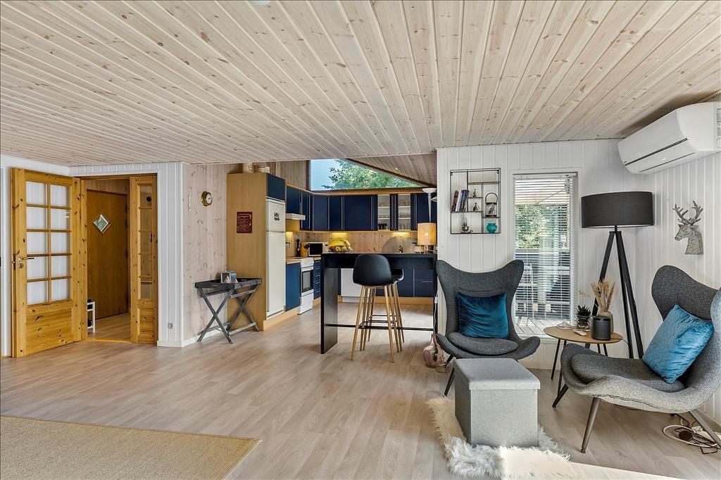 Das schöne, gemütliche Ferienhaus empfängt Sie mit einem geschmackvoll gestalteten Innenbereich. Gute, klassische Möbel und klare, helle Farben und Wohntextilien charakterisieren den Einrichtungsstil. Die durchdachte, funktionale Raumaufteilung sorgt zudem dafür, dass Sie viel gemeinsame Zeit mit Ihren Lieben in diesem Haus verbringen können. Diverse moderne Ausstattungsgegenstände und Hilfsmittel stehen Ihnen zur Verfügung. Zu nennen sind beispielsweise ein Geschirrspüler, Parabolempfang und eine drahtlose Internetverbindung. Die Wohnfläche unterteilt sich in einen Küchen- und Wohnbereich mit integriertem Essplatz, drei Schlafräume und ein Badezimmer. Dieses Ferienhaus eignet sich hervorragend für eine Familie mit Kindern, die im Urlaub gerne viel Zeit gemeinsam verbringt.