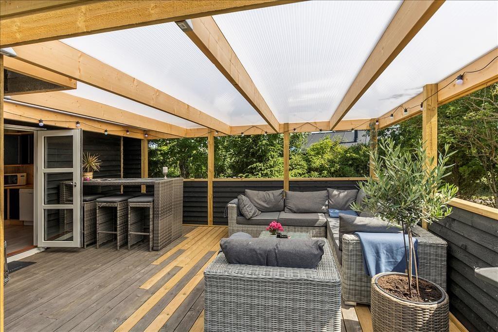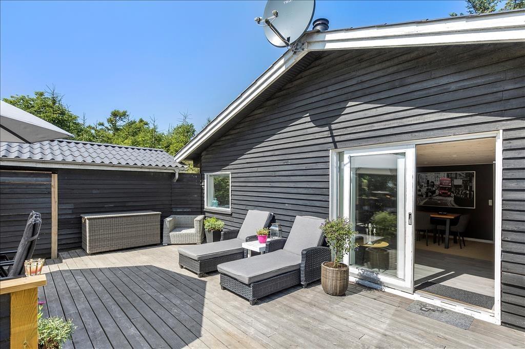 Der Außenbereich dieses reizenden Urlaubsdomizils ist etwas ganz Besonderes und in dieser Art und Weise nur selten in Blokhus zu finden. Das wunderbare Grundstück bietet für Ihre Kinder beste Möglichkeiten zum Spielen und Toben. Während Ihre Kinder vergnügt auf dem Grundstück umhertollen, können Sie es sich auf der guten, großen Terrasse an der Südseite des Hauses gemütlich machen und von morgens bis abends die Sonnenstrahlen genießen. Die gemütlichen Gartenmöbel und der Grill garantieren Ihnen, falls es das Wetter zuläßt, herrliche Sommertage und -abende unter freiem Himmel.