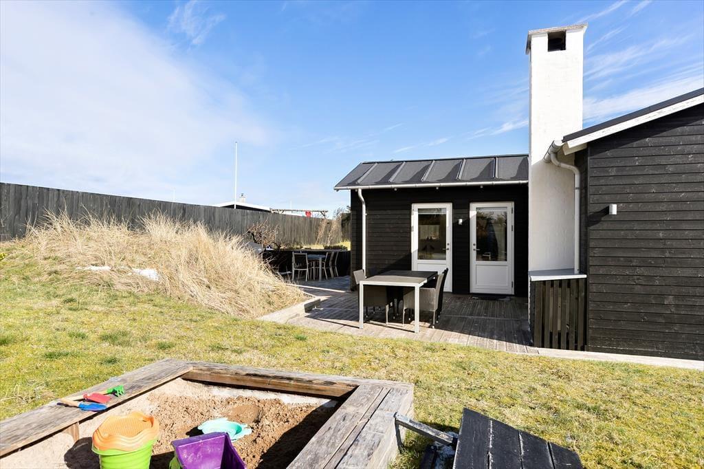 Rund ums Haus genießen Sie die Wahl zwischen mehreren guten Terrassen. Für ein Frühstück in der Morgensonne, ein Mittagsschläfchen und einen gemütlichen Grillabend werden Sie problemlos ein passendes Plätzchen finden. Eine hölzerne Umrandung schirmt die Terrasse an der Ostseite ein wenig vom Weg ab. Die Westterrasse befindet sich hingegen gänzlich ungestört hinter dem Haus. Ihre Kinder dürfen sich auf eine Grasfläche und eine Sandkiste zum Spielen freuen.