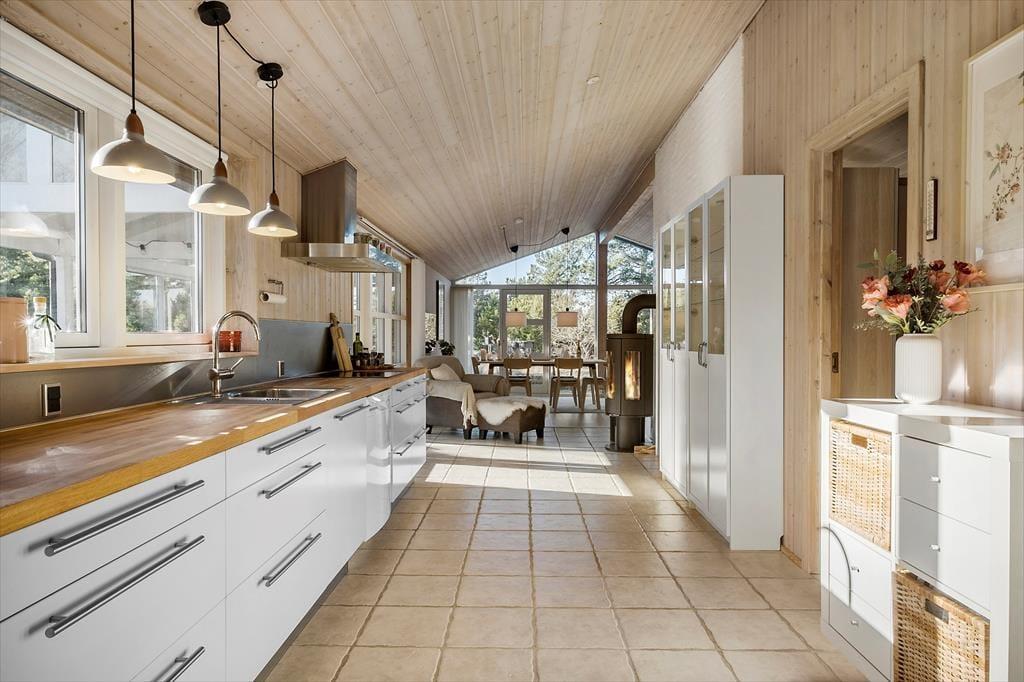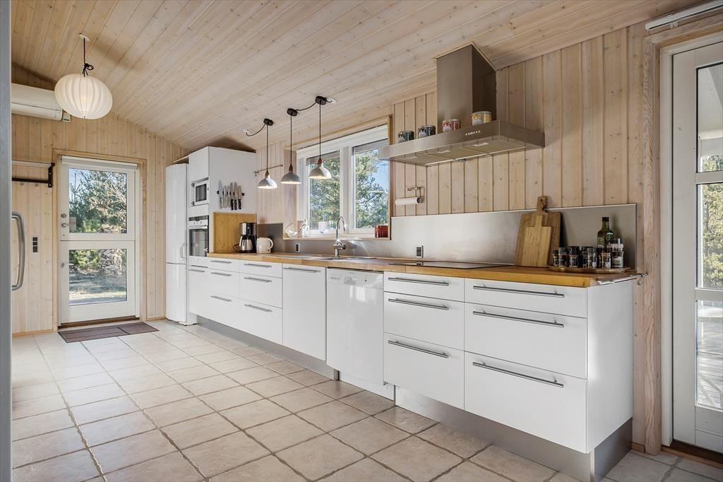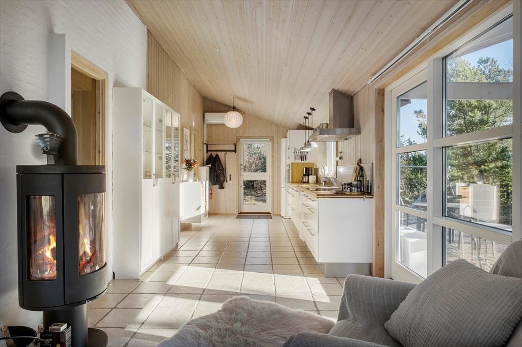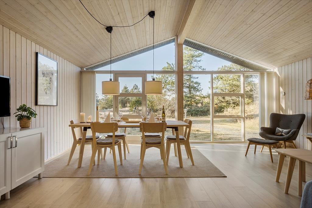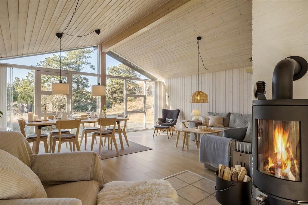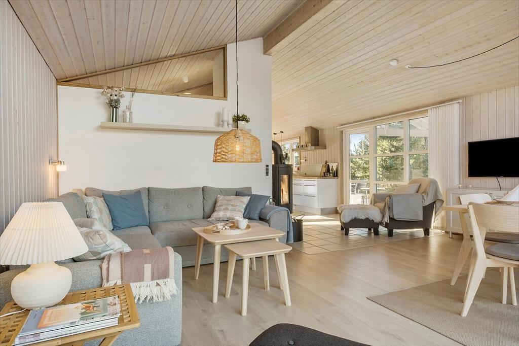 Tritt ein in ein Ferienhaus, in dem die warme und einladende Atmosphäre dich sofort umarmt. Innen spürst du ein heimeliges Gefühl, das zum Verweilen und Genießen der ruhigen Umgebung einlädt. Die hellen und stimmungsvollen Räume, geschmückt mit großen Fenstern, öffnen sich zur Schönheit der Natur und füllen den Raum mit Sonnenlicht. Stell dir vor, du sitzt gemütlich bei einem guten Buch am Kamin, während die sanfte Brise durch die offenen Türen weht und du den Gesang der Vögel hörst, der die Natur ins Wohnzimmer bringt. Die Atmosphäre im Ferienhaus schafft unvergessliche Momente mit Familie und Freunden, in denen sowohl Lachen als auch stille Momente ihren Platz finden.