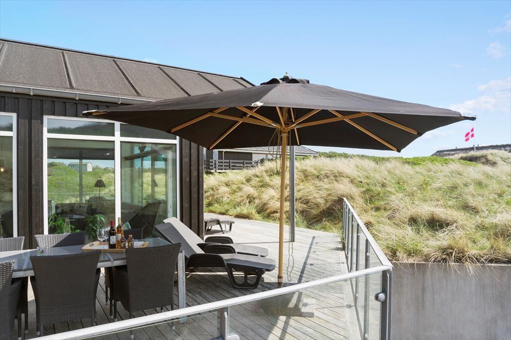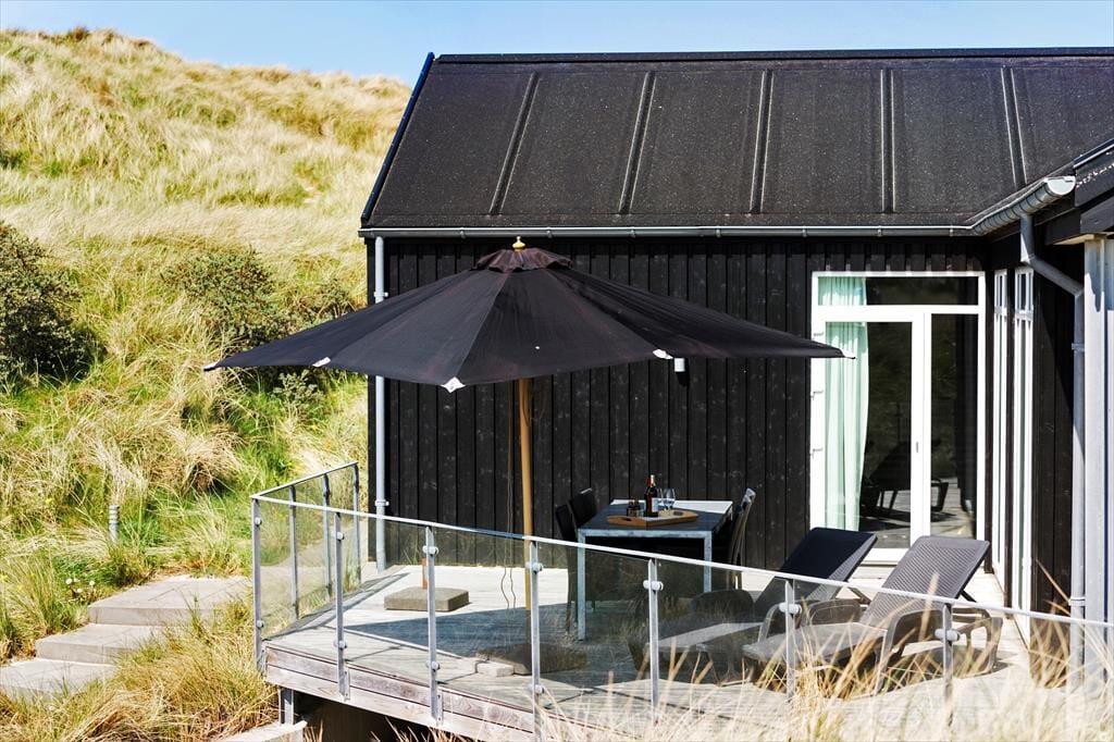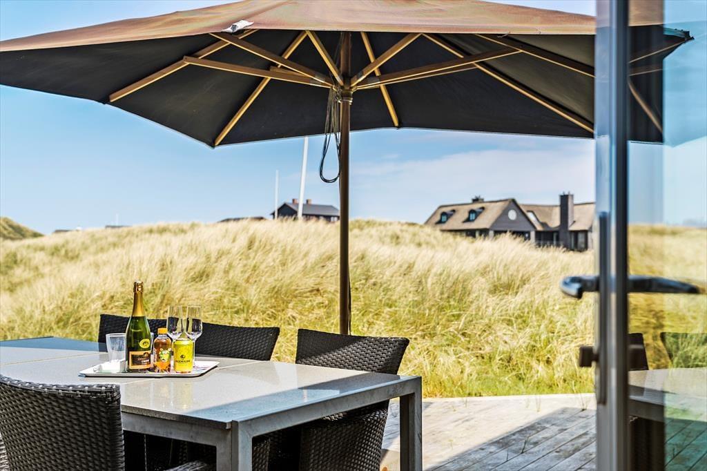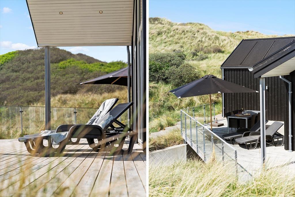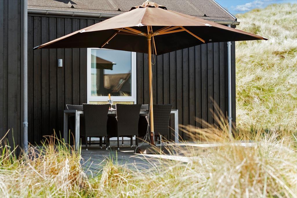 Das Ferienhaus befindet sich am Ende des Weges, direkt an den Dünen. Der Abstand zu den Nachbarhäusern ist angenehm groß. Die Umgebung ist daher friedvoll und schön. Sie können sich gänzlich ungestört auf einem Liegestuhl sonnen und dabei den freien Blick über die mit Strandhafer bewachsenen Dünen genießen. Das Terrassenareal umgibt das gesamte Haus. Es bietet viel Platz für gesellige Stunden im Familienkreis und gleichzeitig ausreichend Platz für ruhige Momente, die Sie allein mit einem guten Buch oder einem kleinen Nickerchen verbringen.