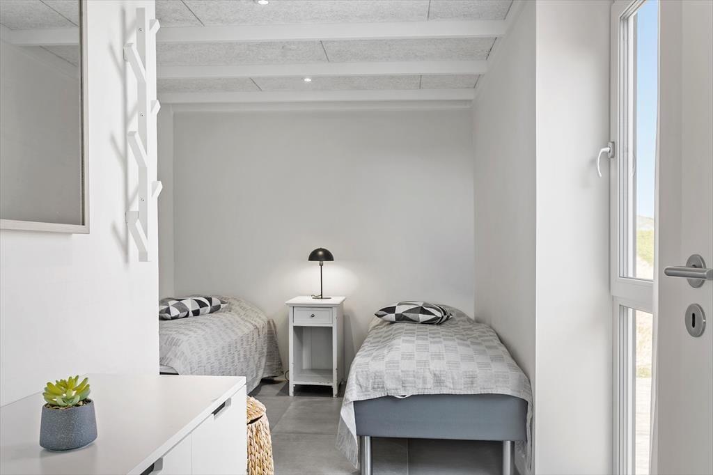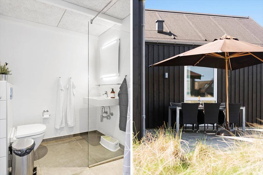 In Verlängerung der unteren Etage steht ein Carport zur Verfügung. Ihren Pkw können Sie hier getrost einen Großteil des Urlaubs über stehen lassen. Das Überqueren der Dünen dauert nur einen kurzen Augenblick. Hinter den Dünen erwarten Sie der schöne Sandstrand und die faszinierende Nordsee. Obwohl Sie das Gefühl genießen, an einer schön abgeschiedenen Ecke von Blokhus zu wohnen, trennt Sie lediglich ein fünfzehnminütiger Spaziergang vom lebendigen Ortskern des beliebten Badeortes. Falls Sie trotz der reizvollen Umgebung Lust auf einen Ausflug per Pkw verspüren, besuchen Sie beispielsweise das Fårup Sommerland, den Jambo Feriepark oder das Waldgebiet Blokhus Klitplantage.