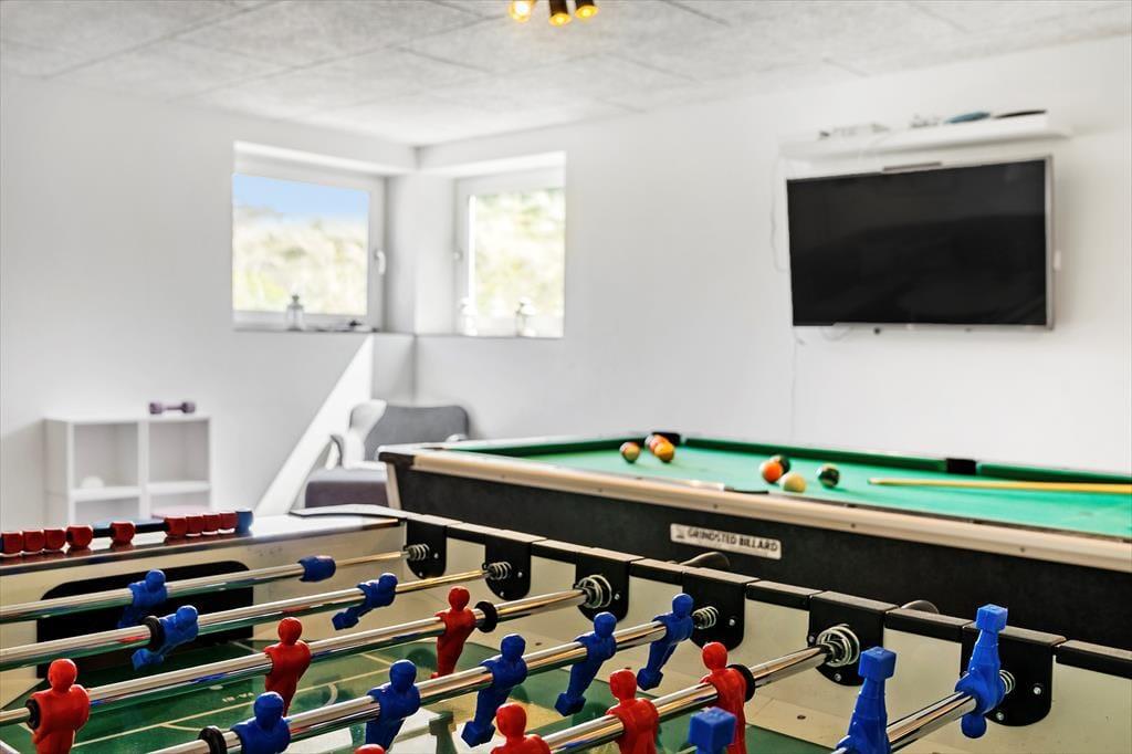 Dieses moderne hochqualitative Ferienhaus glänzt mit einem Aktivitätsraum, einem Whirlpool, einer Sauna und großen Sonnenterrassen. Hier im Moreavej haben Sie zudem das Vergnügen, in der ersten Dünenreihe zu wohnen. Nur wenige Schritte trennen Sie vom wunderbaren Blokhus Strand.