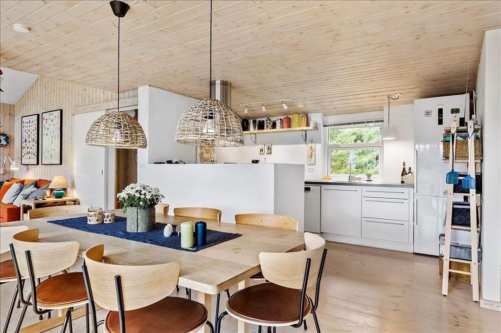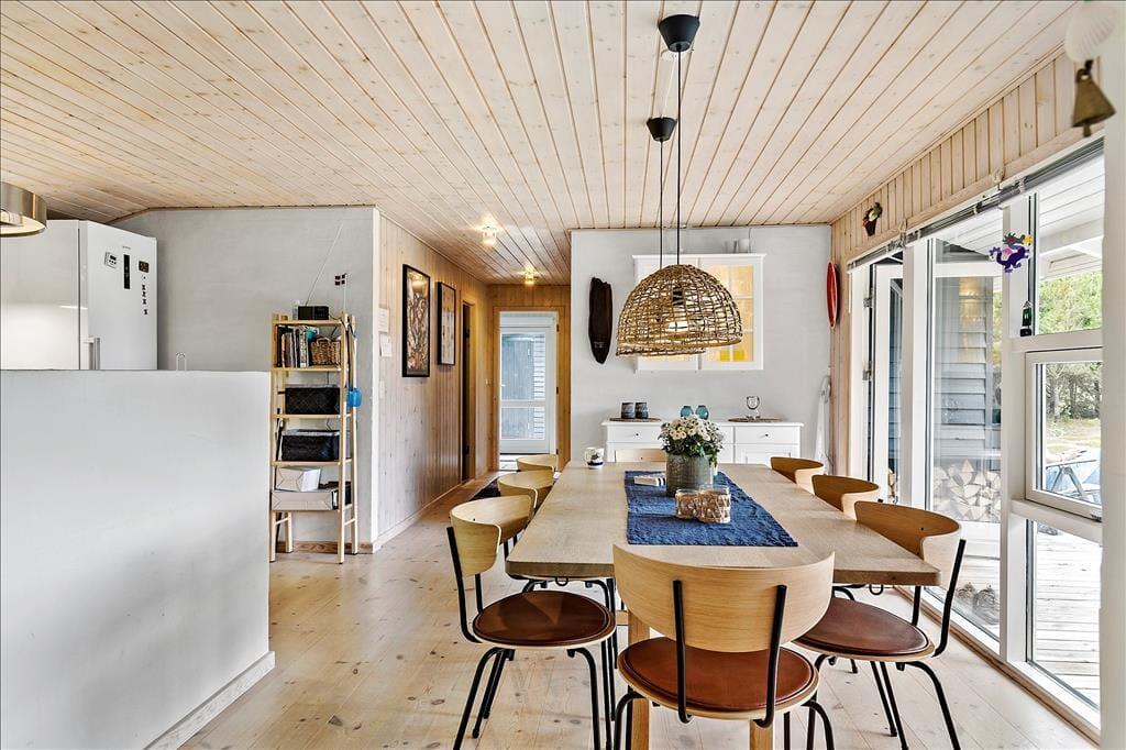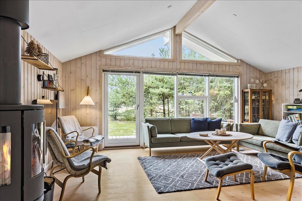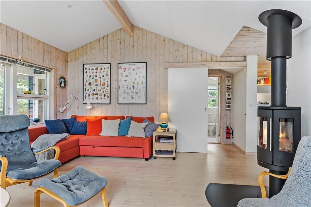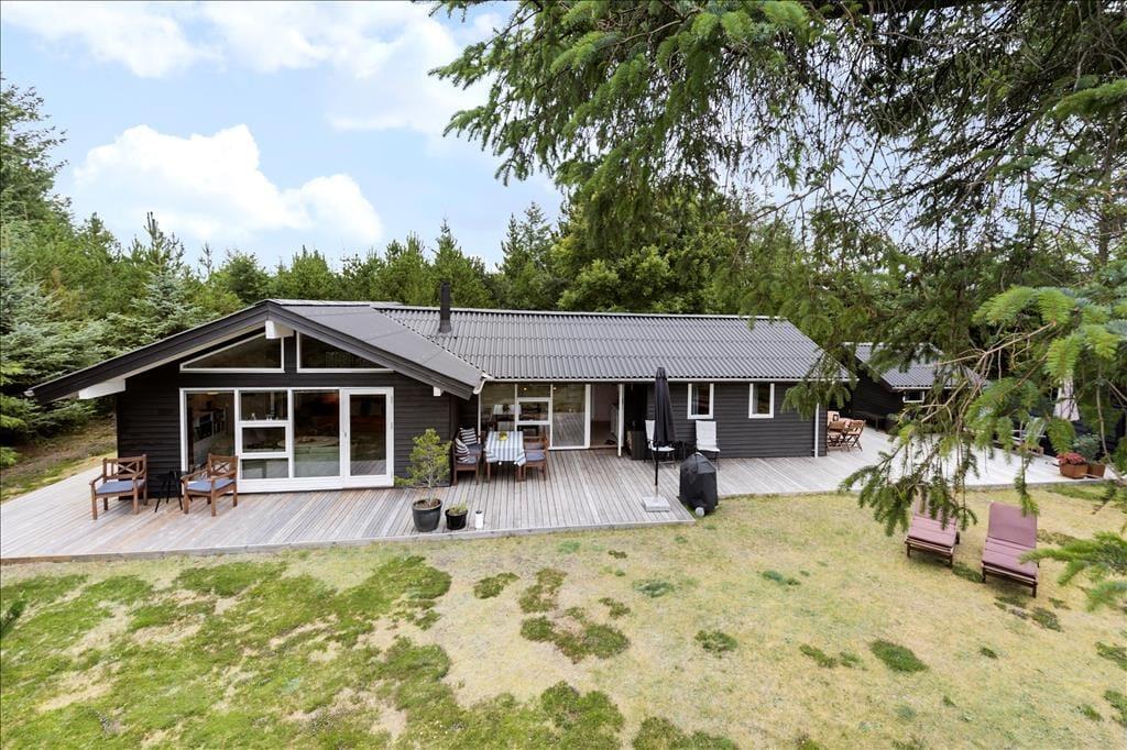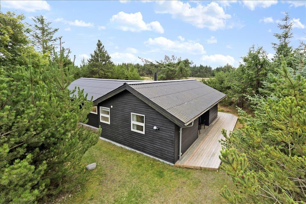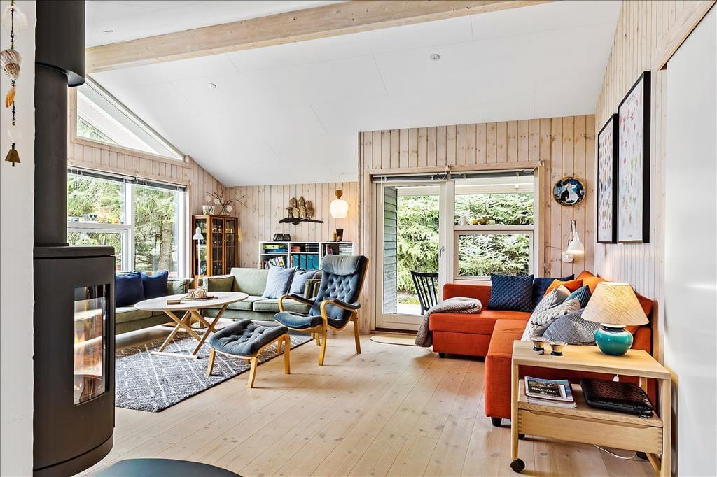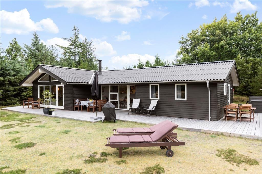 Idyllisch sieht es aus auf dem Skovmaarvej in Blokhus, wo dieses herrliche Holzferienhaus liegt. Hier bekommen Sie einen naturschönen, ungestörten und durch und durch gemütlichen Rahmen für Ihr Ferienleben – komplett mit Kaminofen im Wohnzimmer und einer schönen Sonnenterrasse im Freien.