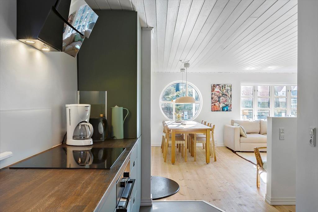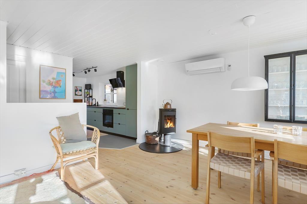 Das Ferienhaus ist sehr schön und wurde im Jahre 2021 gründlich renoviert. Innerhalb des Ferienhauses haben Sie 72 m2 zur Verfügung, und hierzu kommen zwei schöne Anbauten, so dass Sie insgesamt Platz für 8 Personen haben. Der Aufenthaltsraum des Ferienhauses liegt in offener Verbindung zur modernen und gut eingerichteten Küche, welche Sie weiterleitet zu einem hellen und schönen Wintergarten. Sie können sich also dort aufhalten, wo Sie möchten, ungeachtet, ob Sie sich es am Kaminofen gemütlich machen möchten, einen Filmabend gönnen möchten, oder eine sommerliche Grillparty in stimmungsvoller Umgebung genießen möchten. Der Bauplan bietet darüber hinaus auf ein Badezimmer und zwei Schlafzimmer, wovon das eine mit zwei Einzelbetten und das andere mit einem Doppelbett ausgestattet sind. Beide Anbauten sind jeweils mit einem Doppelbett ausgestattet, und der eine verfügt außerdem über ein extra Badezimmer.