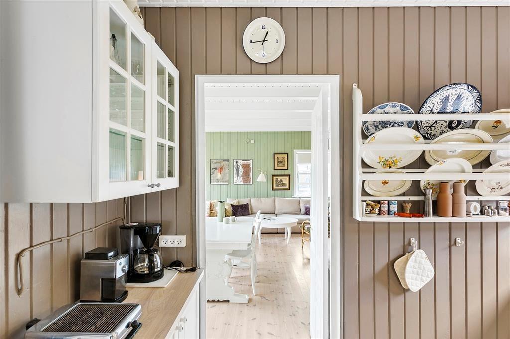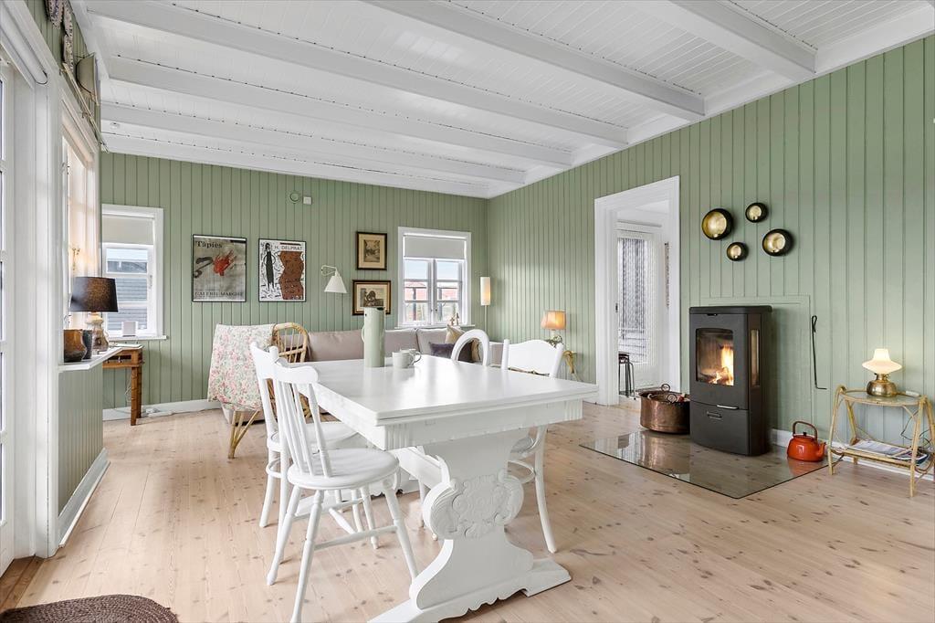 Das schwarze Holzferienhaus begeistert mit unglaublich viel Charme und Seele. Dank der zahlreichen Fensterpartien wirkt der Innenbereich wunderbar hell und einladend. Die offenliegenden Deckenbalken tragen zusammen mit dem romantisch knisternden Kaminofen und der reizenden Einrichtung maßgeblich zur wunderschönen und ganz authentischen Ferienhausstimmung bei. Das Herzstück des Hauses ist der gemütliche Aufenthaltsraum, der von mehreren Himmelsrichtungen mit Tageslicht geflutet wird. Hier laden eine Sofagruppe und eine schöne Essecke im zu erholsamen und entspannten Stunden im Kreise Ihrer Lieben ein. Vom Wohnraum genießen Sie zudem direkten Zugang zur Terrasse, die an warmen Tagen als natürliche Verlängerung der Wohnfläche fungiert. Die Küche im Landhausstil ist einfach, aber funktionell. Ihnen stehen zwei Schlafräume zur Verfügung, von denen einer mit einem Doppelbett ausgestattet ist. Im zweiten Schlafraum stehen zwei Etagenbetten für Sie bereit. Insgesamt bietet das Urlaubsdomizil daher ausreichend Platz für sechs übernachtende Gäste. Ein Badezimmer mit einer Dusche und ein Gäste-WC sind selbstverständlich ebenfalls vorhanden.