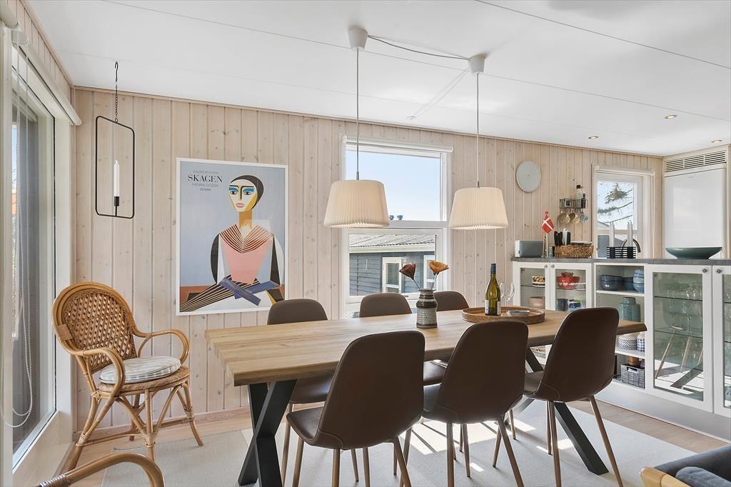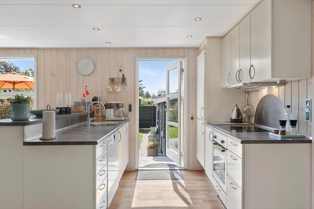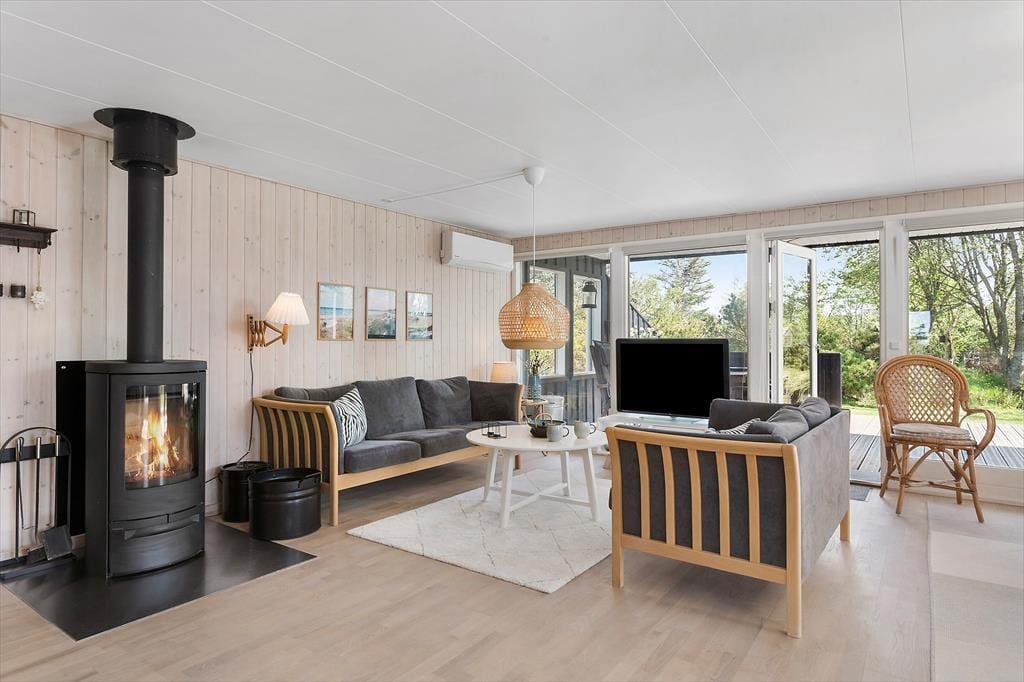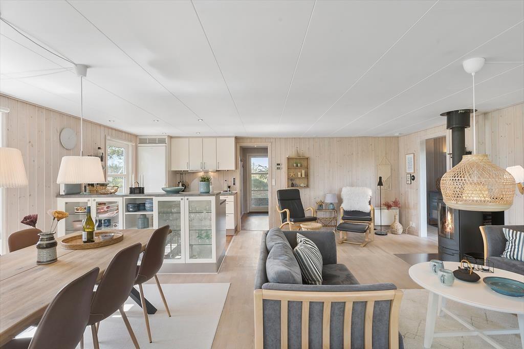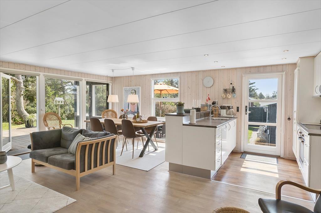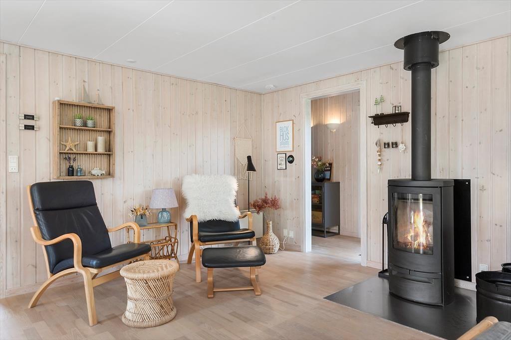Dieses Urlaubsdomizil ist der Inbegriff von echtem dänischen Ferienhauscharme. Details wie die holzverkleideten Wände, der Kamin und die komfortable Möblierung schaffen im Inneren eine außerordentlich gemütliche Atmosphäre. Zahlreiche Fensterpartien verleihen den Räumen zudem ein luftiges, helles Wohnambiente. Ihr Reisegepäck können Sie gut in den beiden vorhandenen Schlafräume verstauen. Sollte Ihnen die Anzahl der Schlafplätze im Haus nicht ausreichen, können Sie selbstverständlich auch gerne das neben dem Haus befindliche Nebengebäude bewohnen. Neben den Schlafräumen zählen auch ein schönes Badezimmer mit Sauna und ein großer Wohnbereich mit integrierter Küchenabteilung zur Wohnfläche.