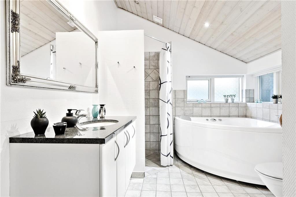 Dieses Ferienhaus verfügt über gepflegte 135 m² Wohnfläche. Mit anderen Worten können Sie ganz einfach zusätzliche Freunde oder Familienmitglieder in den Sommerurlaub einladen, ohne Platzprobleme zu bekommen. Egal ob Sie einen Familienurlaub oder Paarurlaub planen, das Haus ist mit zwei Badezimmern ausgestattet von denen eins über eine Sauna und einen Whirlpool verfügt. Es gibt vier Schlafzimmer im Haus und ein Schlafboden mit extra Matratzen. Zu guter Letzt gibt es noch den Wohnbereich, ein schönes und großes Wohnzimmer mit hohen Decken, Kaminofen und integrierter Küche.