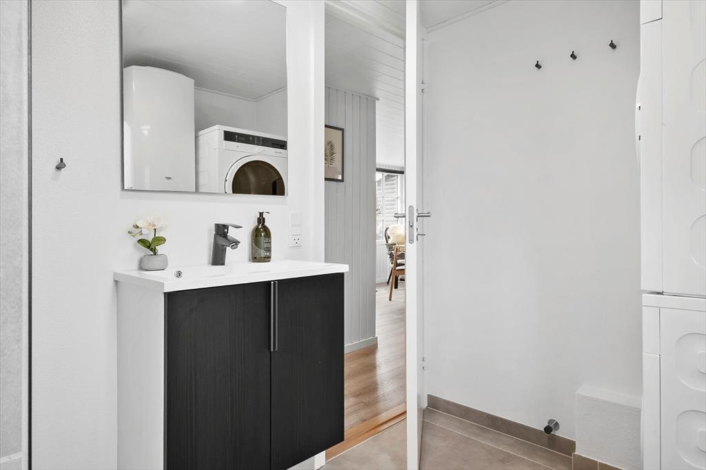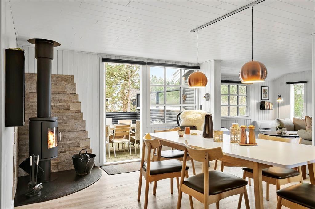Dieses Ferienhaus bietet Ihnen einen hervorragenden Rahmen für wunderschöne Urlaubstage. In 2020 wurde das Objekt einer umfassenden, liebevoll durchgeführten Renovierung unterzogen. Alles, von den Küchenelementen über die Badezimmerausstattung bis hin zu den Fußböden und der Terrasse, wurde erneuert. Das Haus wurde zudem gestrichen, sodass es auch von außen wunderbar frisch und einladend wirkt. Die Möblierung im klassisch skandinavischen Stil fügt sich perfekt in die stimmungsvollen Räumlichkeiten ein. Dank des Kaminofens dürfen Sie sich im Aufenthaltsbereich, der sich offen aus der Küche und dem Wohnraum zusammensetzt, auf ein Maximum an echter Ferienhausstimmung freuen. Zur Wohnfläche zählen außerdem drei gute Schlafzimmer, von denen eines zusammen mit einem eigenen Gäste-WC im Nebengebäude platziert ist. Das Badezimmer im Haupthaus begrüßt Sie mit einer Waschsäule, einer Fußbodenheizung und einer schönen, attraktiven Duschnische.
