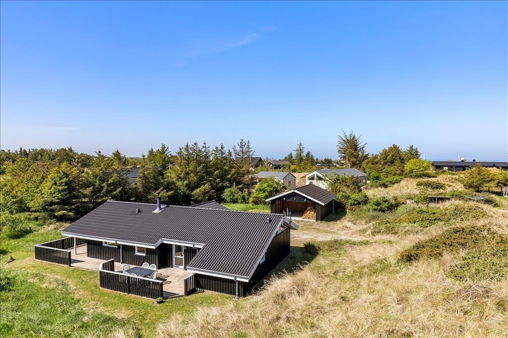 Das Ferienhaus liegt super gut auf dem Wølundsvej, welcher ein kleiner zurückgezogener Weg ist, den viele gar nicht kennen. Diese kleine Ansammlung an Häusern, die hier in dieser kupierten Landschaft liegen, ist ganz beschützt und ungestört. Gleichzeitig liegen die Ferienhäuser schön dicht zur Stadtmitte von Blokhus, so dass die gute Auswahl an Geschäften, Restaurants und Eiskiosken nicht weit entfernt ist, wenn Sie Lust auf einen Schuss gemütlicher Ferienstimmung haben. Lockt Sie ein Bad im Meer, sind es ungefähr ein Kilometer zum Blokhus Strand, und wenn Sie in der Blokhus Klitplantage laufen, wandern und Fahrrad fahren möchten, haben Sie auch einen leichten Zugang zu den grünen Waldwegen.