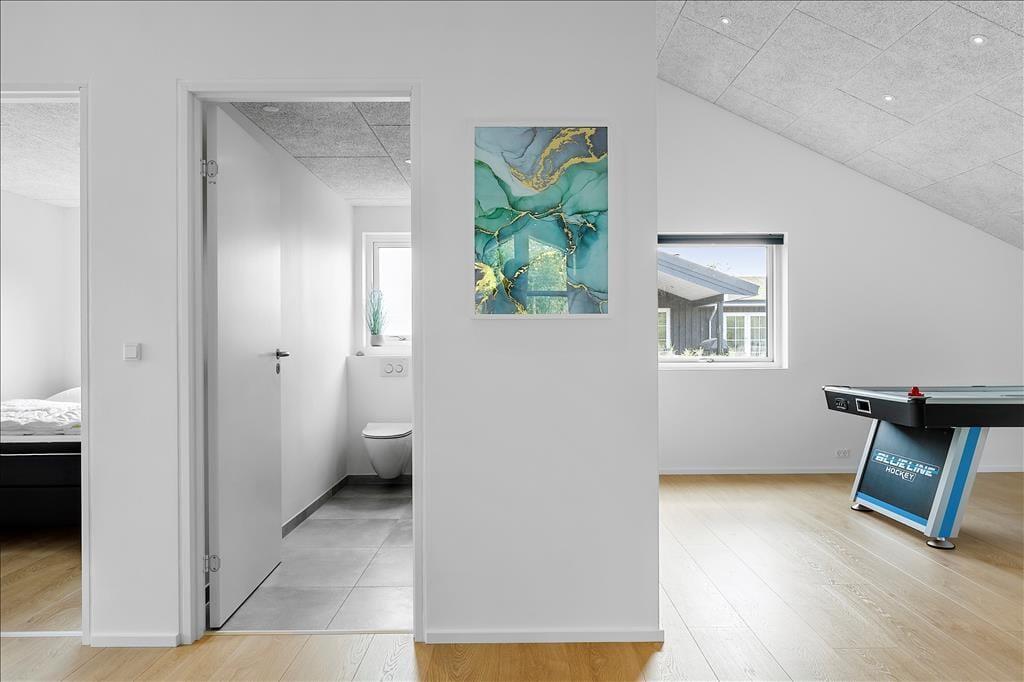 Das Ferienhaus passt sich gut der Umgebung an, denn hier in der Gegend kann die Familie sich darauf freuen viele gemütliche und spaßige Erlebnisse gemeinsam zu unternehmen. Von dem kleinen Ferienhausweg haben Sie einen kurzen Abstand zum Fårup Sommerland, welcher übervoll ist mit Vergnügungen für Groß und klein, und in dem kleinen Ort Hune können Kulturliebhaber und Gartenenthusiasten sich auf einen Besuch im Skulptur Park und in Anne Justs Garten freuen. Außerdem liegt die Blokhus Klitplantage gleich in der Nähe, aber wenn Sie lieber zum Strand gehen möchten und im Meer baden wollen, ist dieses auch möglich. Es ist auch gemütlich in die Stadtmitte des Ortes Blokhus zu gehen, ungeachtet ob Sie Essen gehen möchten, in Geschäften schnuppern oder nur in den Straßen des populären Badeortes herumwandern möchten.