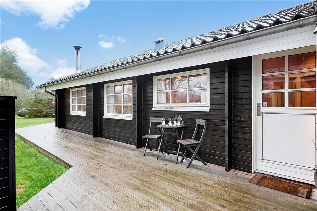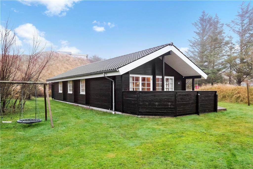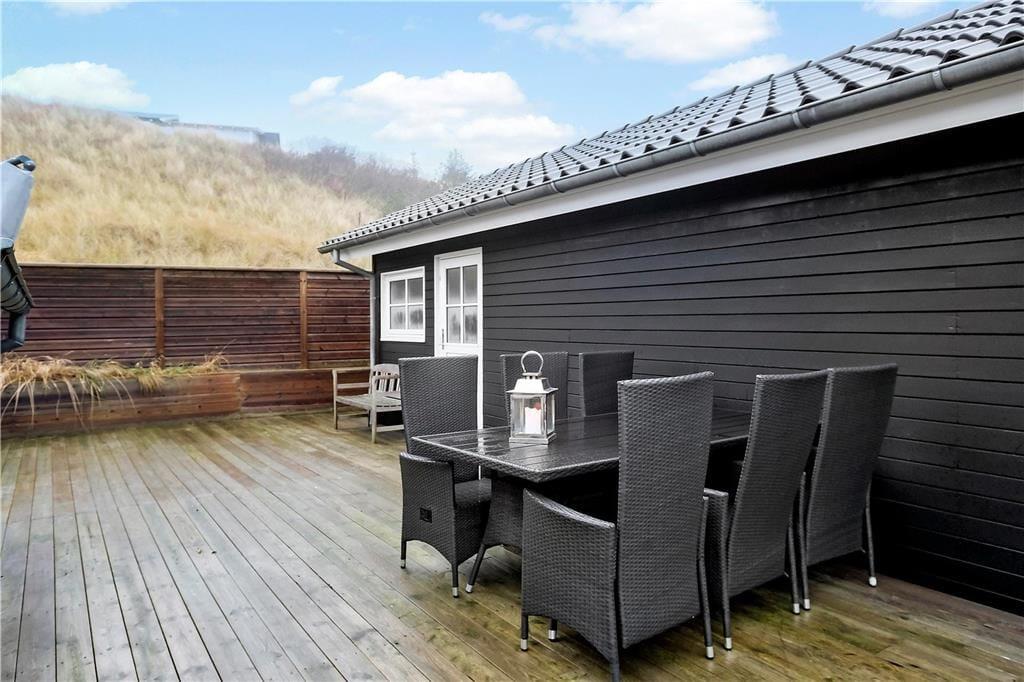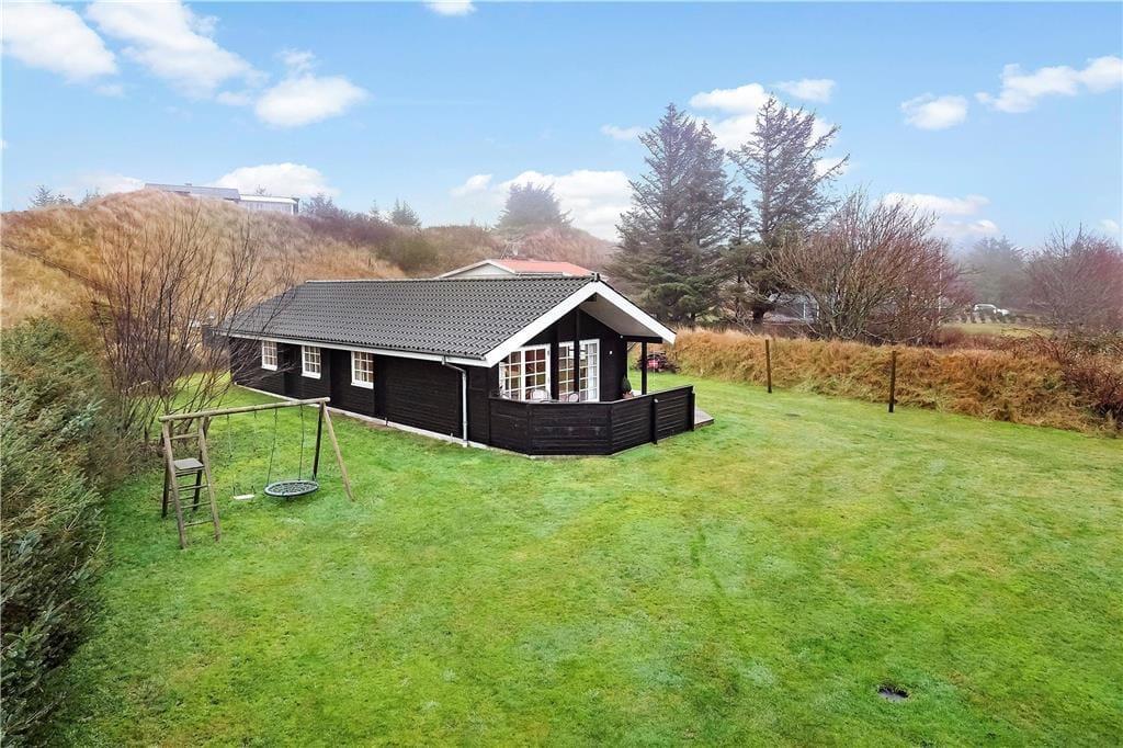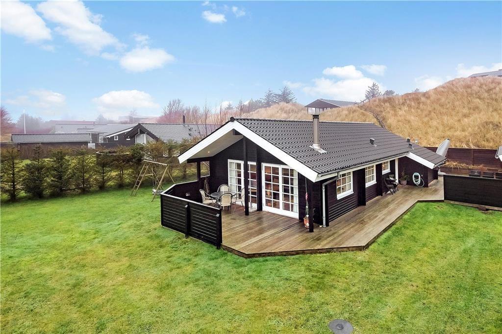 Das schöne Terrassenmilieu des Ferienhauses sorgt für mehrere Wahlmöglichkeiten, wenn Sie das Ferienleben im Freien genießen möchten. Mit teilweiser Überdachung und Abschirmung ist es leicht einen ungestörten Aufenthaltsplatz – in entweder Schatten oder Sonne je nach Wunsch – zu finden. Auf dem grossen Grundstück steht ein Stativ mit Schaukeln für die jüngsten Feriengäste, und sowohl Große sowie auch Kleine können sich beim Spiel und Sport auf der grossen Rasenfläche austoben.