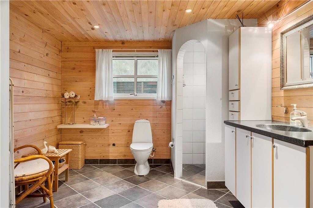 Der Gyvelvej ist eine Sackgasse, die direkt am Ferienhaus endet, so dass die Faulenzertage auf der Terrasse in ruhigem und entspanntem Rahmen vor sich gehen können. Gleichzeitig sorgen kleine Wege und Pfade dafür, dass es leicht ist sich zu Fuß in diesem Gebiet zu bewegen – z. B. hin zu der grossen Blokhus Klitplantage, welche nur wenige hundert Meter entfernt beginnt. Der Weg kann auch zum Strand führen, welcher mit weißem Sand, den blauen Wogen des Meeres und viel Platz für Spiel und Entspannung lockt, und falls Sie Lust auf eine große Eiswaffel oder eine leckere Mahlzeit in einem guten Restaurant bekommen, sind es nur 1,5 Kilometer zur Ortsmitte nach Blokhus.