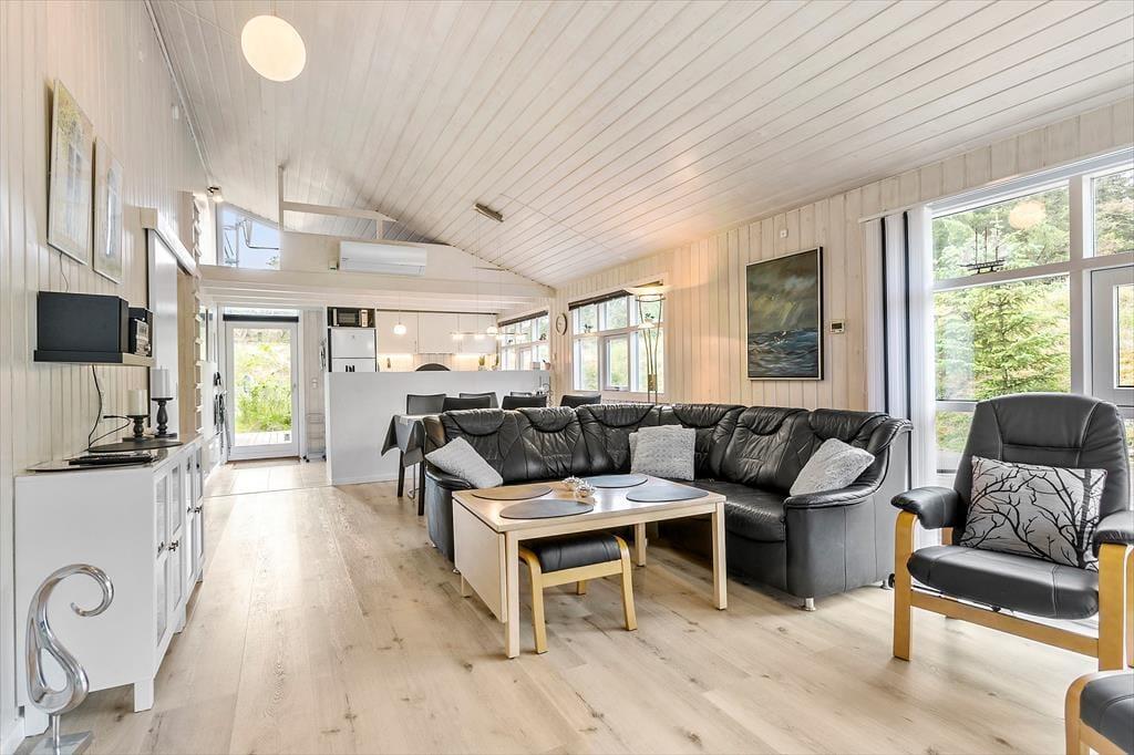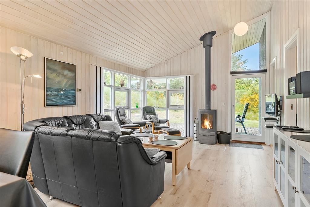 Das Ferienhaus ist mit Fliesen und in allen Räumen mit Qualitätsmöbeln ausgestattet. Der gute Geschmack des Eigentümers zeigt sich in der gesamten Einrichtung des Hauses. Das Ferienhaus hat eine tolle und gemütliche Ausstattung, die den Urlaub leicht und komfortabel macht, wie beispielsweise kostenloses WLAN, Whirlpool, Sauna, Waschmaschine und Trockner. Der große und offene Küchen- und Wohnbereich mit Essplatz und einem Wohnzimmer wird zum Treffpunkt für die ganze Familie. Sollte das Wetter im Sommer mal nicht mitspielen, ist es angenehm, den Kaminofen an zu machen und die Wärme im gesamten Ferienhaus ausbreiten zu lassen. Außerdem verfügt das Haus über drei Schlafzimmer und ein großes Badezimmer. Das Ferienhaus ist sowohl für Familien- als auch für einen Urlaub zu zweit geeignet. Hier können Sie einen erholsamen Urlaub in einer der besten Urlaubsregionen Dänemarks verbringen.
