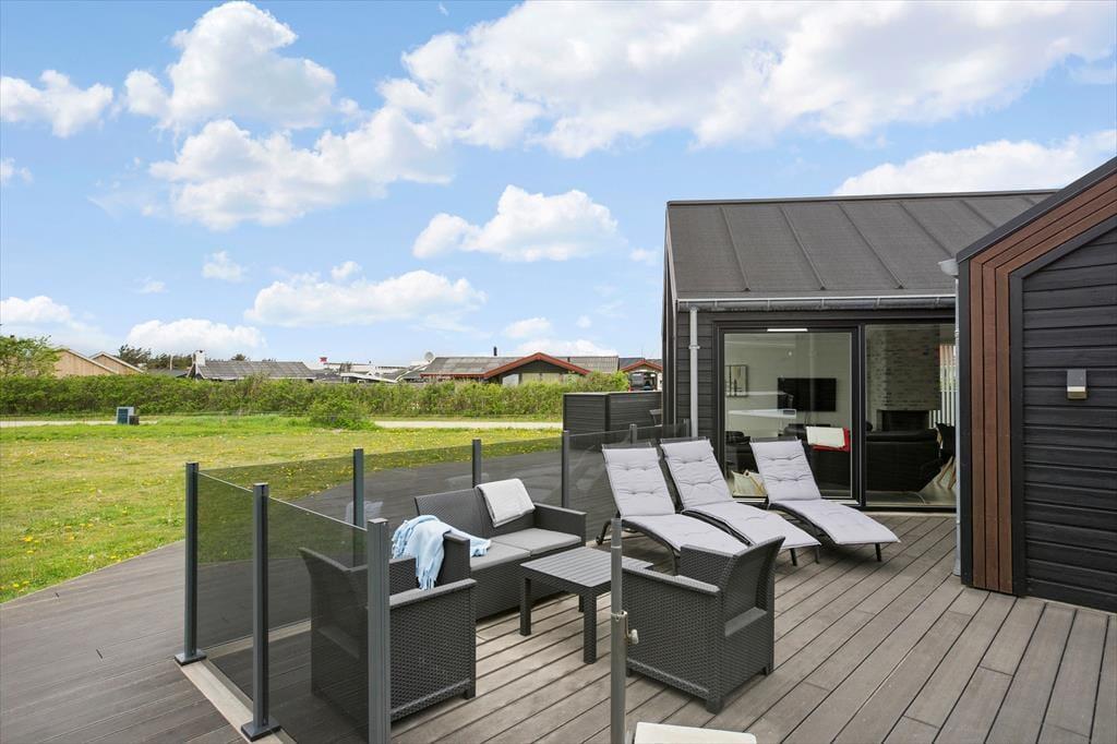 Dieses charmante Ferienhaus auf der Sdr. Strandvej 9A ist ein Traumaufenthalt für alle, die Strand- und Stadtleben gleichermaßen genießen möchten. Die Lage im Herzen von Blokhus macht es einfach, alles zu erleben, was die Gegend zu bieten hat – von den wogenden Dünen der Nordsee bis hin zur gemütlichen Atmosphäre des Blokhus Torv. Das Haus ist von großen Terrassenbereichen umgeben, wo ihr euch entspannen und das Ferienleben in vollen Zügen genießen könnt. Die großen Fensterfronten sorgen für einen fantastischen Lichteinfall, der das Interieur hell und einladend macht. Willkommen in eurem nächsten Ferienparadies!
