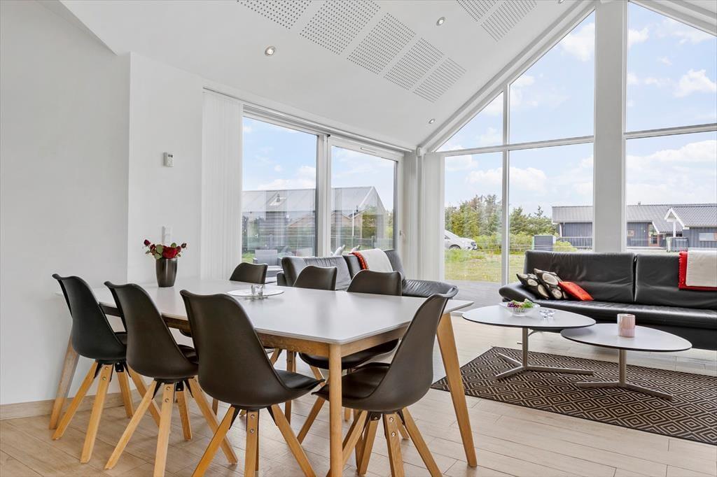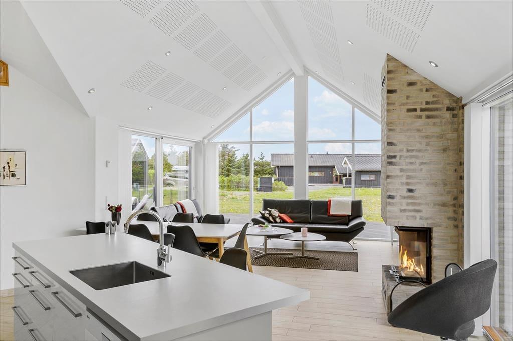 Beim Betreten dieses Ferienhauses werdet ihr von einer hellen und offenen Atmosphäre empfangen. Die großen Fensterfronten lassen das Licht hereinströmen und schaffen eine angenehme Stimmung im ganzen Haus. Das Wohnzimmer ist geschmackvoll mit komfortablen Möbeln und gemütlichen Ecken eingerichtet, wo ihr euch zu Brettspielen versammeln oder einen guten Film genießen könnt. Die Küche ist modern und gut ausgestattet, sodass es ein Vergnügen ist, gemeinsam Mahlzeiten zuzubereiten. Die offenen Raumverläufe machen es leicht, zusammen zu sein, auch wenn einige kochen und andere im Wohnzimmer entspannen. Hier gibt es alle Möglichkeiten, wunderbare Urlaubserinnerungen mit euren Liebsten zu schaffen.