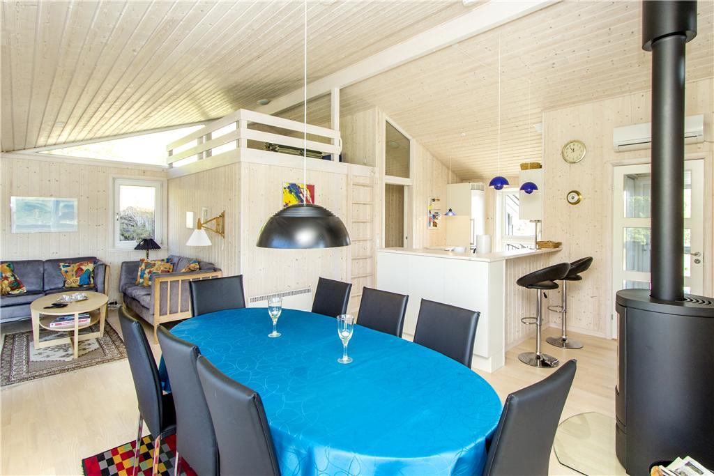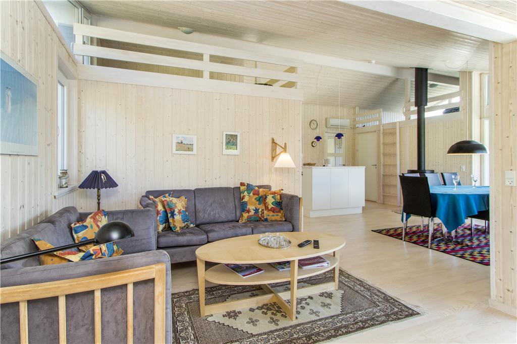 Das schöne Ferienhaus ist mit ansprechenden Möbeln, soliden Geräten und Utensilien sowie guten Betten ausgestattet. Die meisten Räume haben hohe Decken und große Fenster, die viel Licht herein lassen. Hier ist genug Platz für Familien oder gemeinsam reisende Paare. Zentraler Punkt ist der kombinierte Wohn-Küchenbereich mit Essecke, Sofaarrangement, TV und ausreichend Möglichkeit, damit alle gemeinsam am Kamin entspannen und sich erholen können. Drei Schlafzimmer, zwei gute Badezimmer mit Dusche und Fußbodenheizung und kostenloses WLAN bieten allen denkbaren Komfort. Eine wirklich tolle Unterkunft für geglückte Urlaubstage.