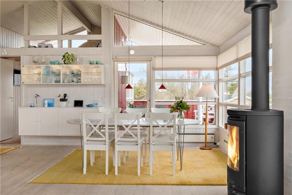 Das Haus ist durchgehend geschmackvoll eingerichtet und besticht mit offenen Decken bis unter den Giebel. Durch die Panoramafenster im Wohnbereich kannst du alle Jahreszeiten in vollen Zügen genießen. Das Herz des Hauses ist der großzügige Küchen- und Essbereich, der offen in das stilvoll eingerichtete Wohnzimmer mit Holzofen übergeht. Dieser sorgt für eine besonders gemütliche und entspannte Atmosphäre, in der man sich sofort wie zu Hause fühlt. Das funktionale Badezimmer verfügt über eine Sauna. Das Ferienhaus bietet drei gute Schlafzimmer: zwei mit jeweils einem Doppelbett sowie eines mit einem Etagenbett. Die hellen Holzwände und -decken verleihen dem Haus eine warme Ausstrahlung und eine freundliche, einladende Stimmung. Alles in allem ist dieses Ferienhaus die perfekte Wahl für eine kleine Familie, die einen erholsamen Urlaub in sicherer und ruhiger Umgebung verbringen möchte.