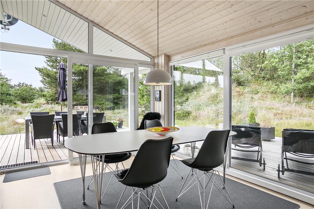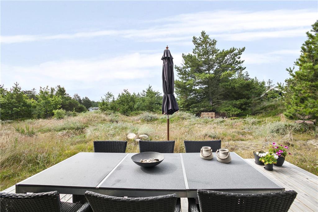 Wenn die Tür sich zu den Terrassen öffnet, riechst du sofort den Sommer und siehst die Natur rund ums Haus. Mit Terrassen nach Osten, Süden und Westen verfolgst du die Sonne den ganzen Tag über – vom Morgenkaffee mit Vogelgesang bis zum Abend, wenn der Sonnenuntergang den Himmel gold färbt. Ein überdachter Teil der Terrasse bietet Schutz, selbst wenn der Tau fällt, während Whirlpool und Sauna im Badezimmer zu Ruhe und Entspannung nach Strandtagen oder Naturerlebnissen einladen. Der Duft von Wald und Meer liegt in der Luft, während du einen stillen Moment im Schatten oder in der Sonne genießt – je nach Lust und Windrichtung.
