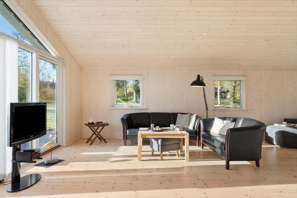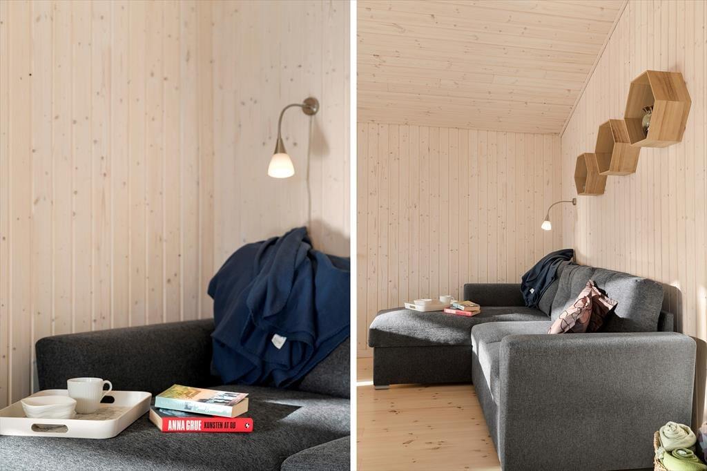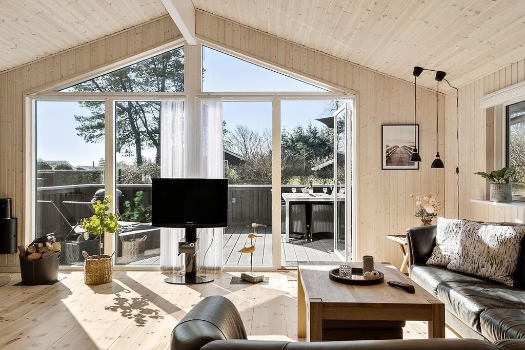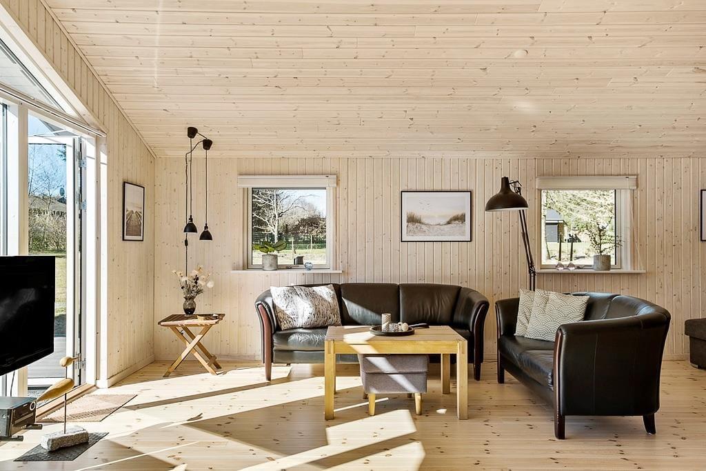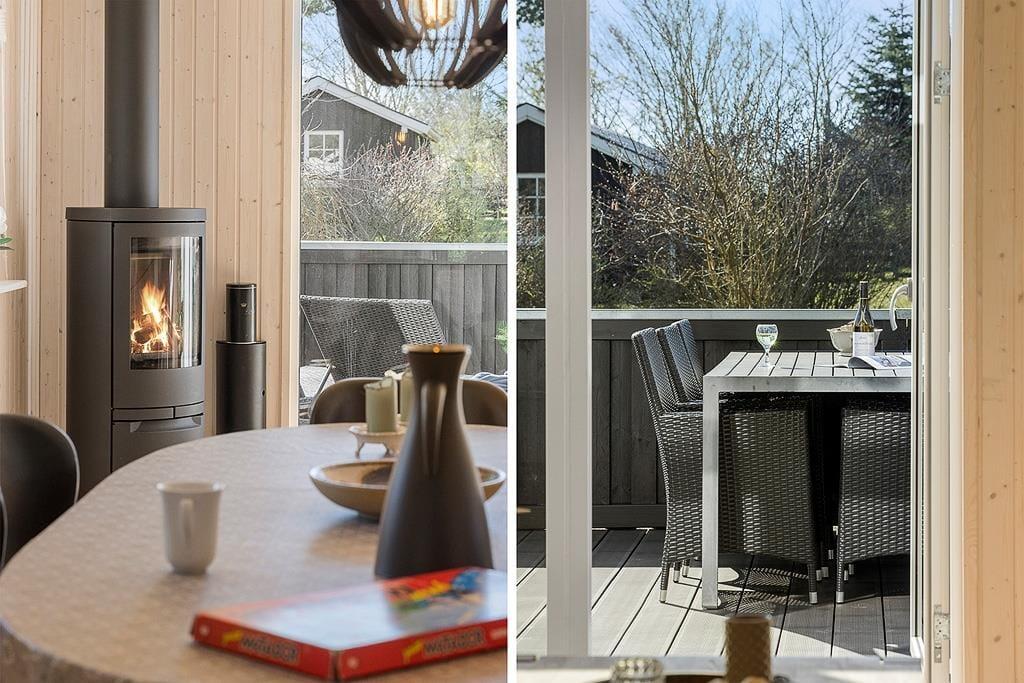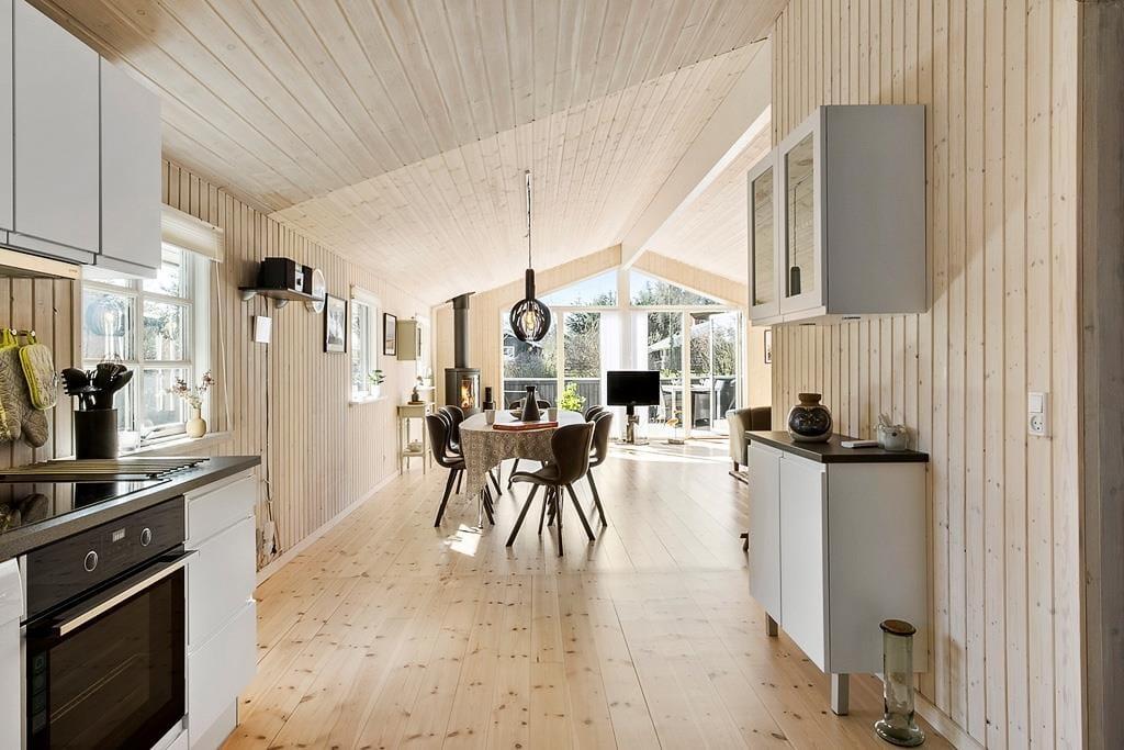 Im Inneren wirst du von einer hellen und offenen Atmosphäre empfangen – mit hohen Decken und großen Fensterfronten, die die Natur direkt ins Haus holen. Das Wohnzimmer ist offen mit der Küche und dem Essbereich verbunden, und das gesamte Wohnambiente lädt zu gemeinsamen Kochabenden, Brettspielen und entspannten Stunden vor dem Kaminofen ein. Dieses Ferienhaus strahlt Wärme und Zusammengehörigkeit aus – und der Alltag rückt sofort in den Hintergrund. Die Einrichtung ist schlicht und funktional mit persönlichen Details, die dem Haus Charakter und Seele verleihen. Hier gibt es Platz für gemeinsame Erlebnisse und ruhige Momente – egal, ob du mit Kindern reist oder als Paar eine Auszeit suchst.