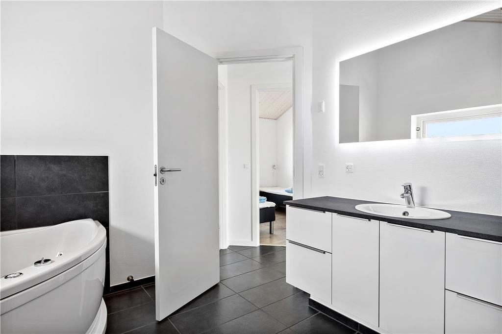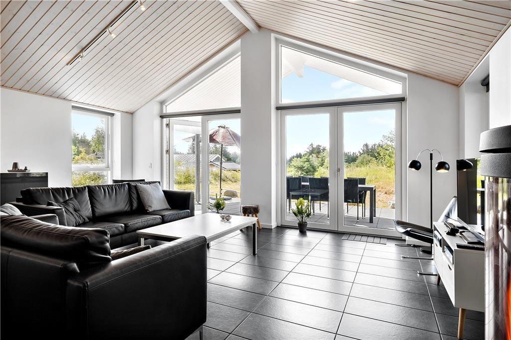 Dieses helle und einladende Ferienhaus ist der perfekte Ort für einen entspannten Urlaub. Mit einer großen und ungestörten Terrasse, auf der du den ganzen Tag die Sonne genießen kannst, und einem hellen Wohnzimmer mit hohen Decken und großen Fenstern bietet dieses Haus die besten Voraussetzungen für einen unvergesslichen Aufenthalt. Mit einem offenen Küchen-/Essbereich und einem Kaminofen ist das Haus ideal für Familien und Freunde, die gemütliche Stunden miteinander verbringen möchten. Ein schönes Badezimmer mit Whirlpool lädt zum Entspannen ein, und die Natur sowie der Strand sind nur einen Steinwurf entfernt.