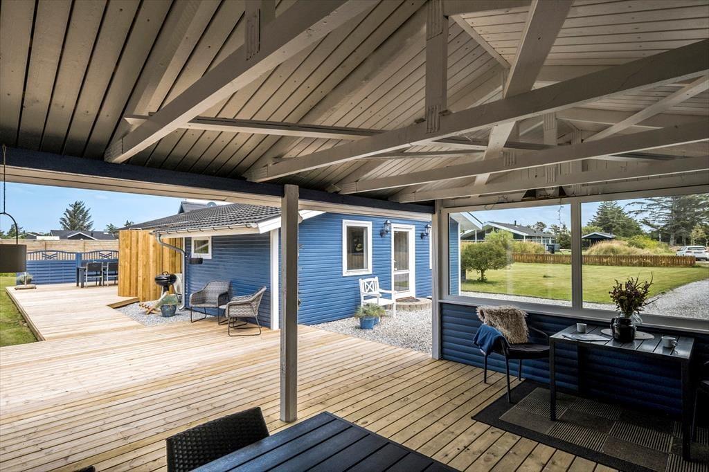 Die Lage ist einfach perfekt – hier bist du sowohl nahe am Blokhus Strand als auch an den vielen Angeboten der Stadt. In nur wenigen Minuten zu Fuß vom Haus bist du am Vesterhavet, wo du lange Strandspaziergänge unternehmen, ein erfrischendes Bad nehmen oder einfach den Klang der Wellen genießen kannst. Blokhus bietet eine Vielzahl an Geschäften, Cafés und Restaurants, sodass du schnell alles bekommst, was du benötigst. Wenn du Lust auf Abenteuer hast, ist der Fårup Sommerland nur eine kurze Autofahrt entfernt und bietet zahlreiche Aktivitäten für Groß und Klein.