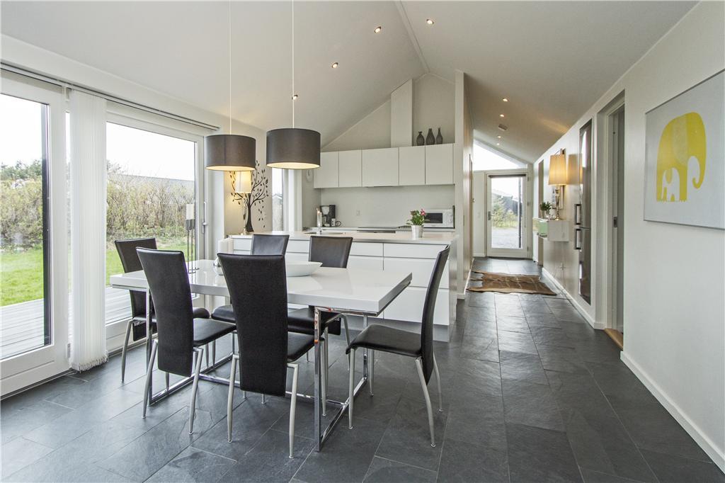 Draußen kannst du das Leben in vollen Zügen genießen – auf den verschiedenen Terrassen, die sowohl Platz für Entspannung als auch für Aktivitäten bieten. Die große Terrasse in südlicher Ausrichtung ist perfekt für sonnige Tage, an denen du den ganzen Tag lang die Sonne genießen kannst. Es gibt auch die Möglichkeit, Mahlzeiten im Freien zu genießen, vielleicht an einem milden Abend mit Grill und gutem Essen. Wenn du eine Pause vom Sonnenbaden benötigst, kannst du dich auf die schattige Seite der Terrasse zurückziehen, wo du in Ruhe ein gutes Buch genießen kannst. Das Haus liegt an einer ruhigen Straße, was es zu einer friedlichen Oase macht, obwohl das lebhafte Zentrum von Blokhus und der beliebte Strand nur einen kurzen Spaziergang entfernt sind.