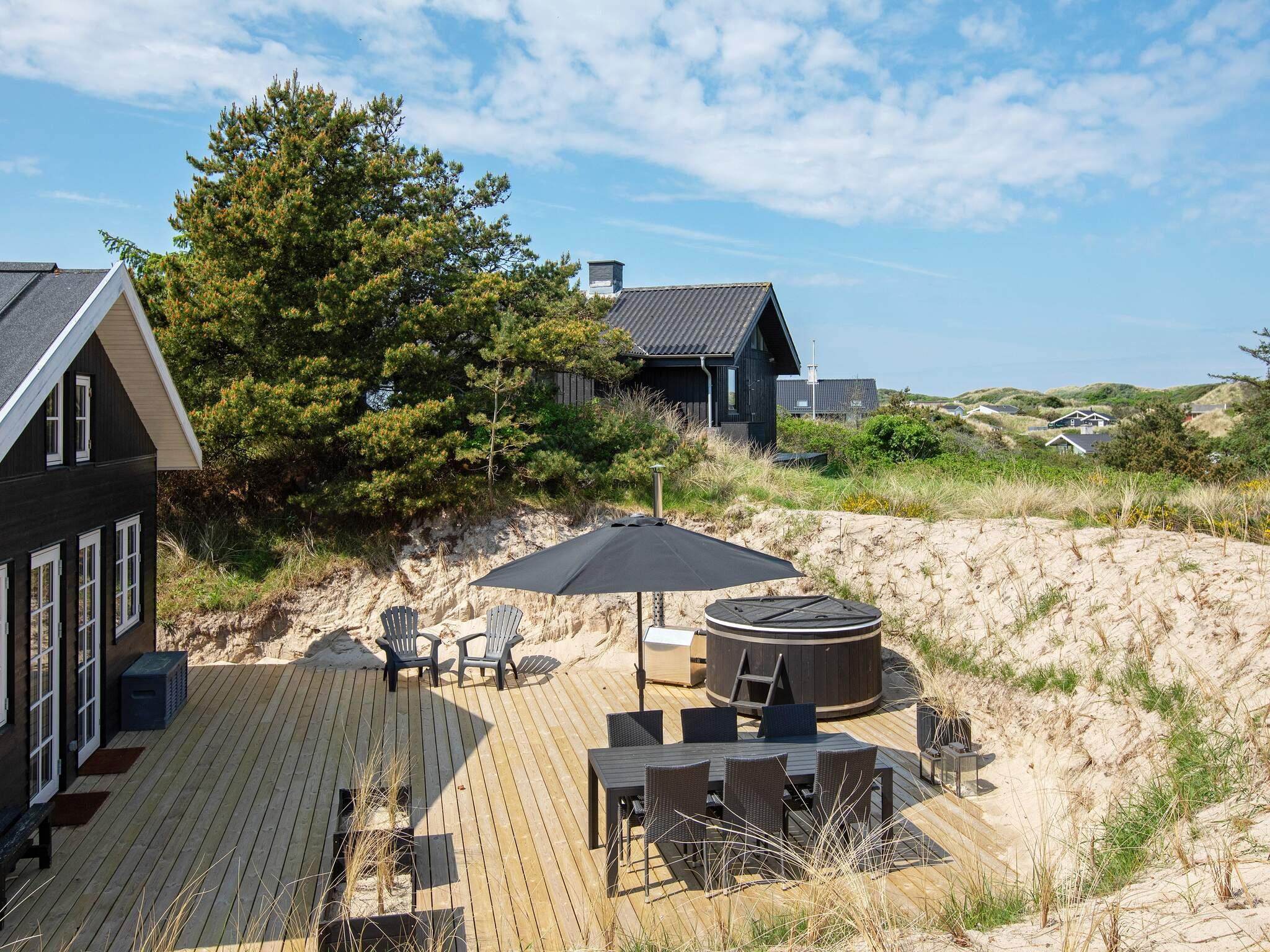 Das Haus steht auf einem Naturgrundstück in leicht erhöhter Lage und bietet sowohl wom Wohnbereich als auch von der geschützten Terrassenfläche aus weite Aussicht über das umliegende Ferienhausgebiet, das eingebettet in der Küstenlandschaft liegt. Sie wohnen hier unweit Küste und Meer sowie der zahlreichen Freizeitangebote des Urlaubsortes Blokhus, wo einiges für den Freizeitspaß zur Auswahl steht.