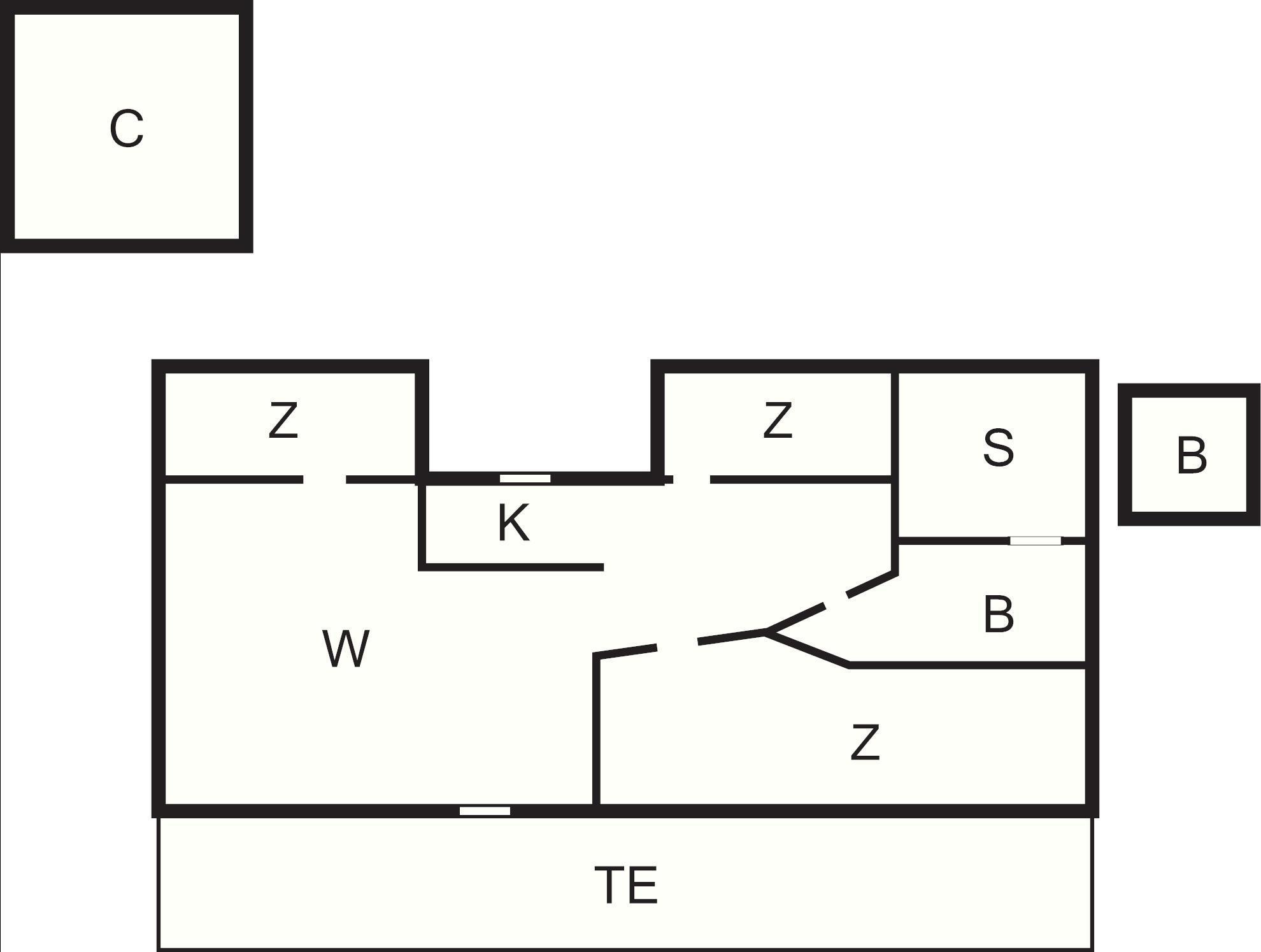 Das gemütliche Ferienhaus ist mit hellen Wänden, niedriger Decke und vielen bodentiefen Fenstern ausgestattet. Das Haus verfügt über drei Schlafzimmer. Zudem gibt es einen offenen Küchen-/Wohnbereich mit Ess- und Sitzecke und guter Küchenausstattung. Im Wohnbereich Couchecke mit TV und Kaminofen für kühlere Abende.