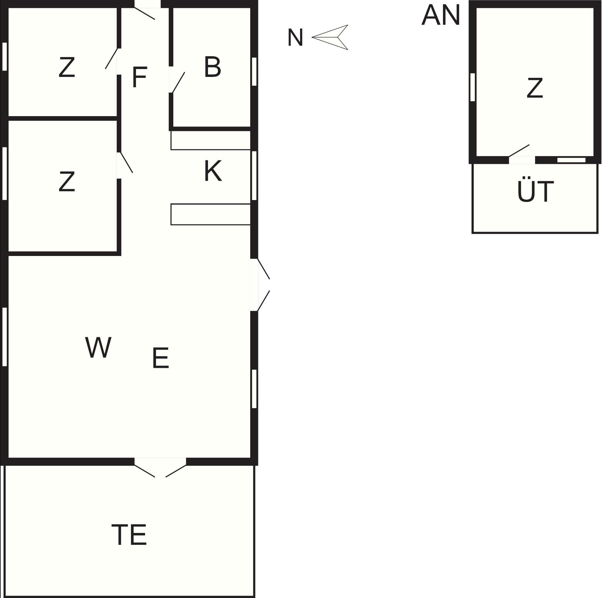 Das Sommerhaus besteht aus einem Wohnzimmer in offener Verbindung mit der Küche, drei Schlafzimmern, von denen sich eines im Anbau befindet (jedoch ohne Heizung), und einem Badezimmer mit Dusche. Ein praktischer Wickeltisch ist ebenfalls vorhanden, was es für Familien mit kleinen Kindern bequem macht.