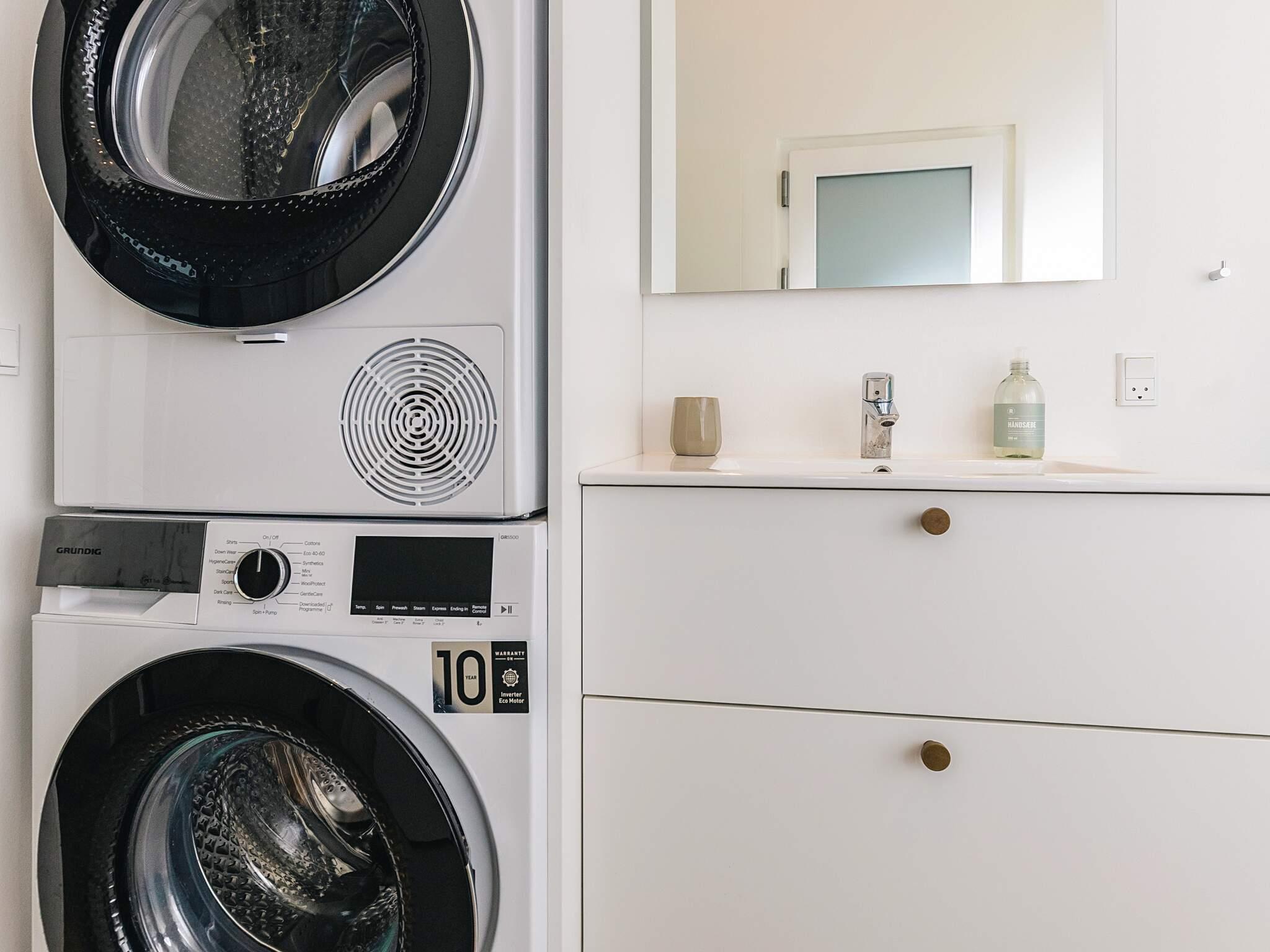 Bad: Waschm, Trockner, WC, Waschb., Dusche