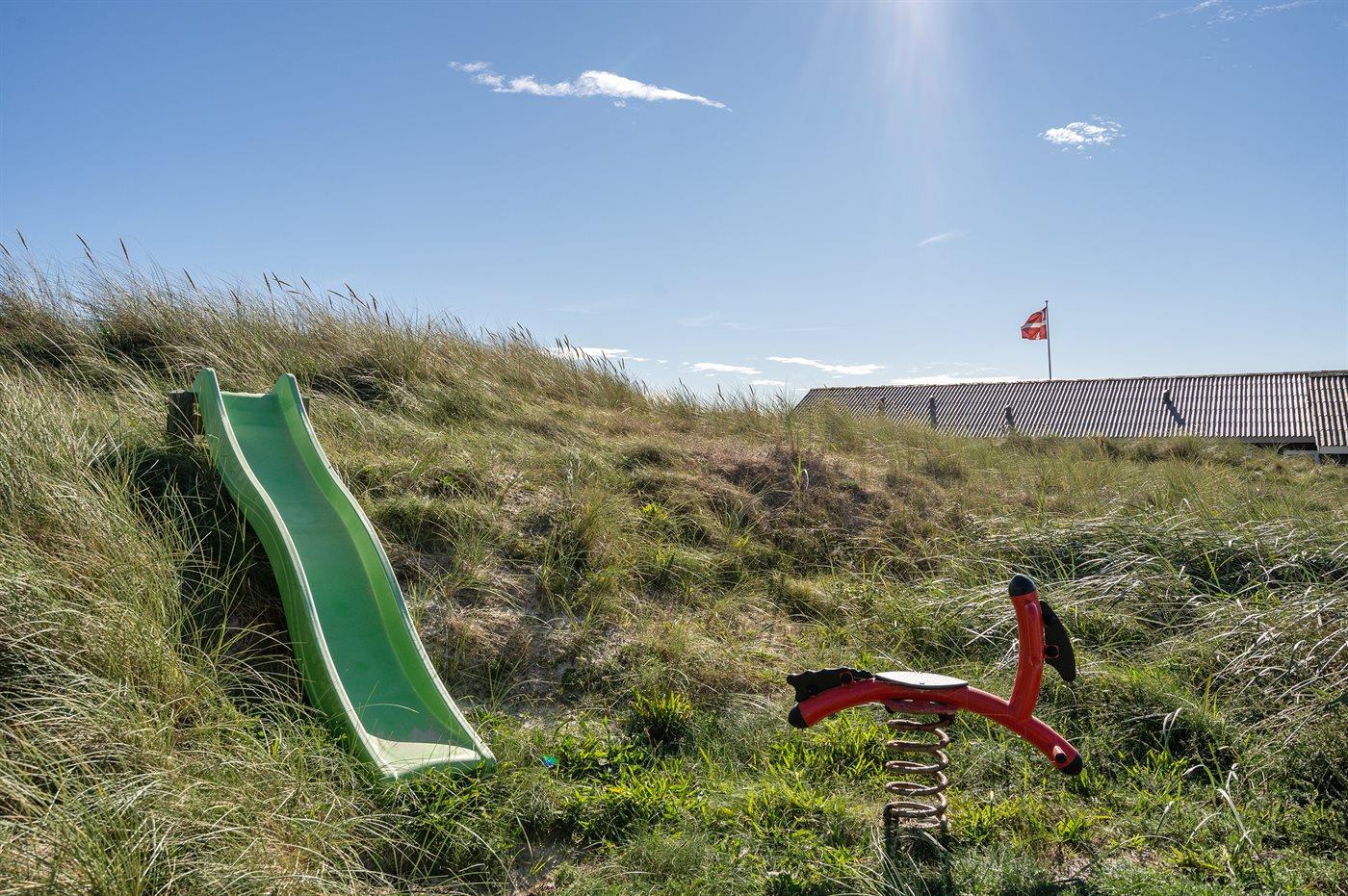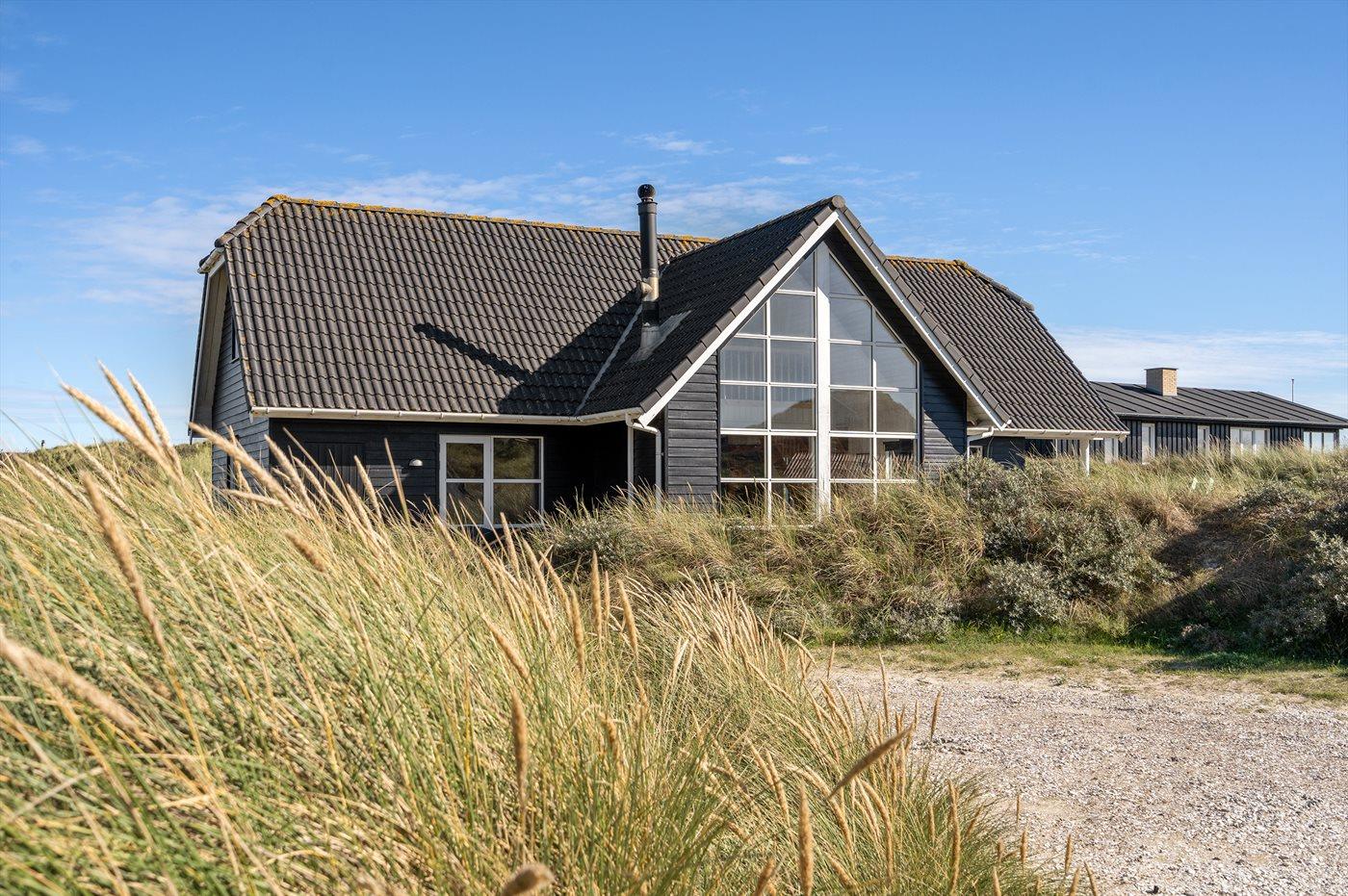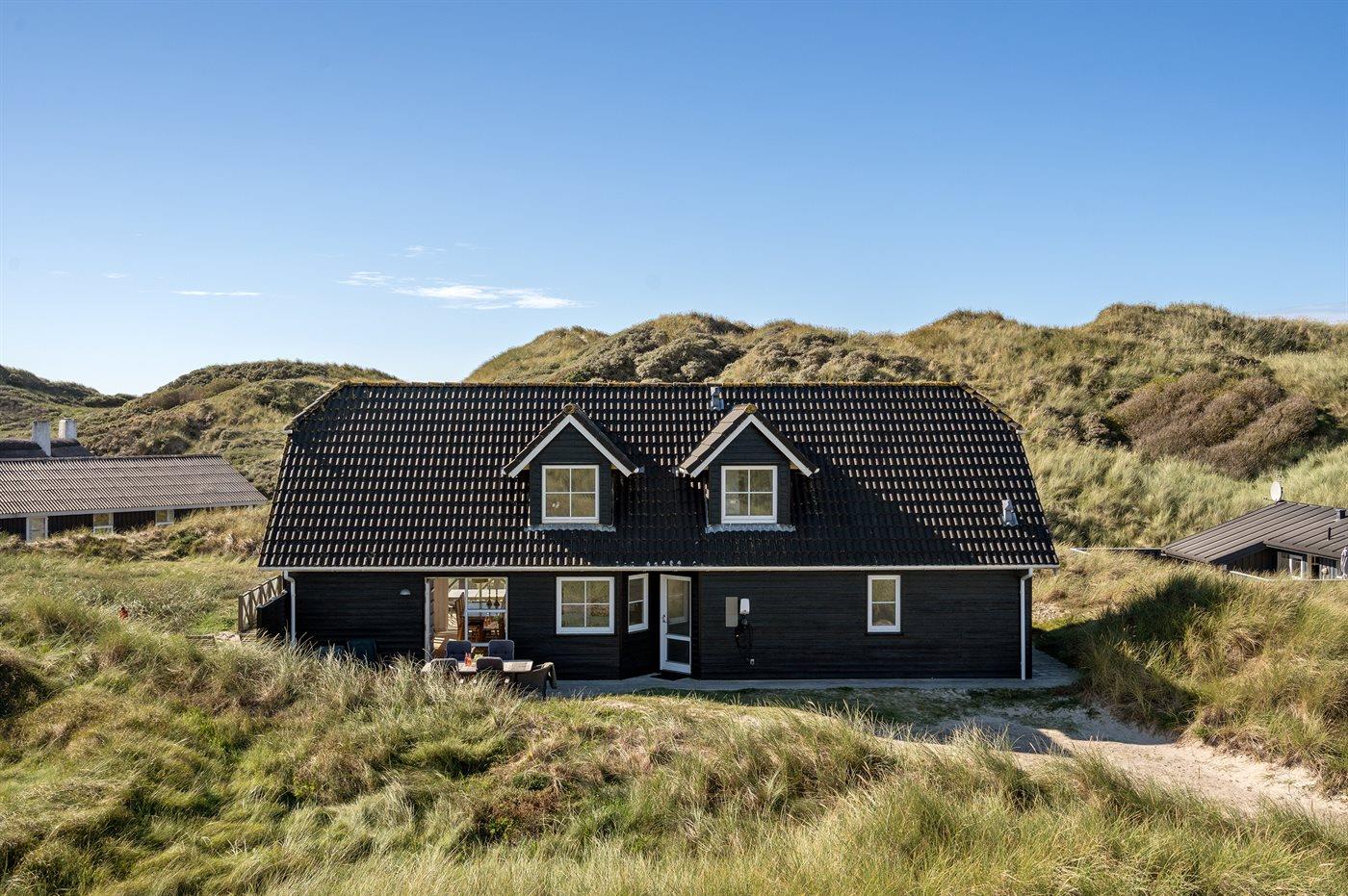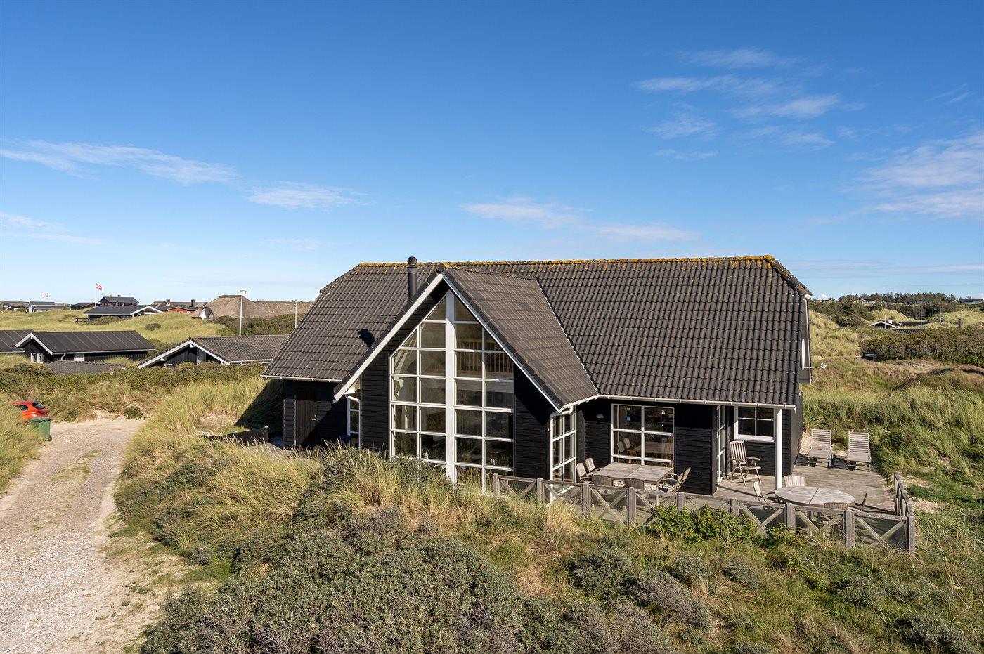 Herrliches und gut gelegenes Ferienhaus in 1. Dünenkette auf einem hügeligen Dünengrundstück, nur 150 m vom breiten, weißen Sandstrand bei Blokhus entfernt.