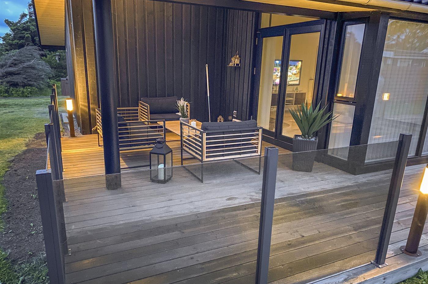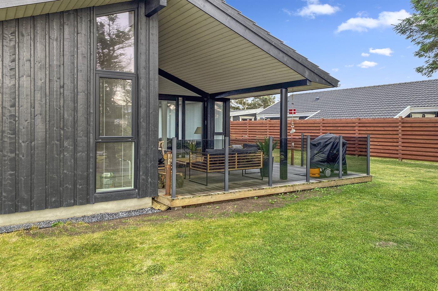 Modernes Ferienhaus in Blokhus, nur 200 m vom Meer entfernt, mit Terrasse und Kaminofen.