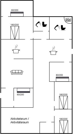 Die Schlafplätze verteilen sich auf 6 Schlafräume. 6 Schlafplätze in Doppelbetten. 6 Schlafplätze in Etagenbetten.