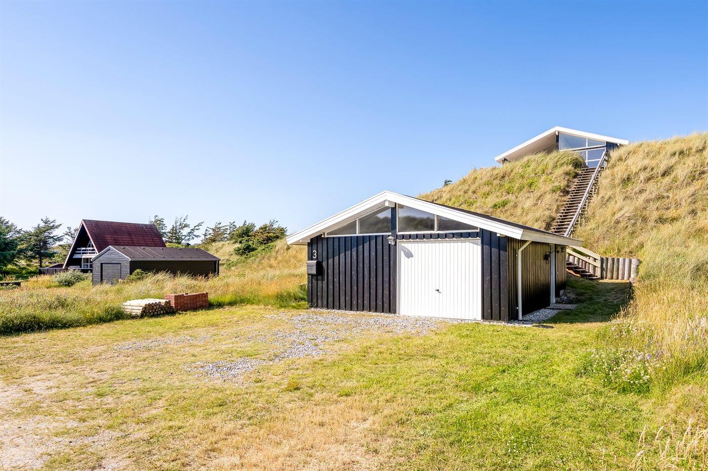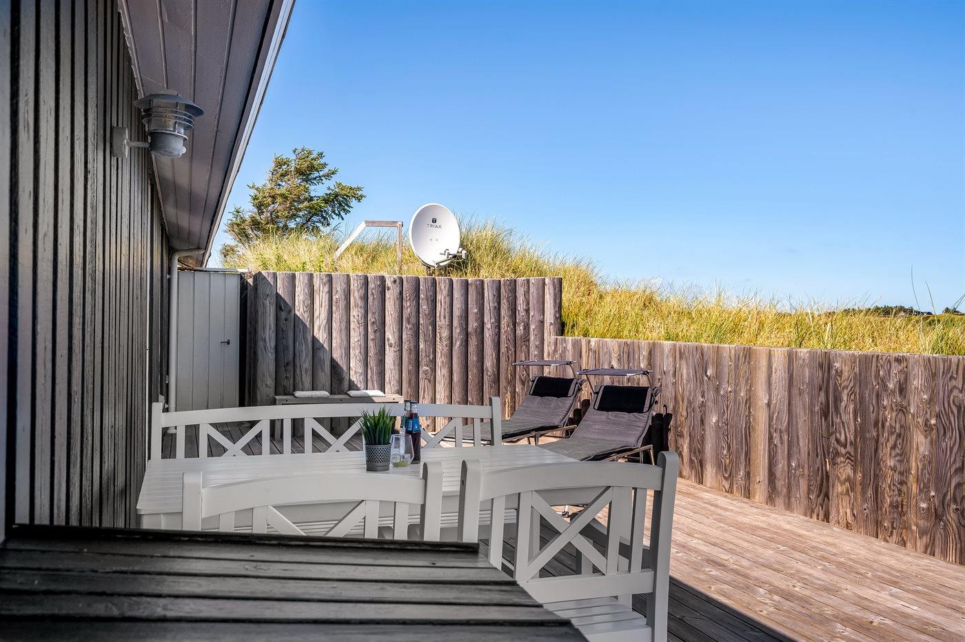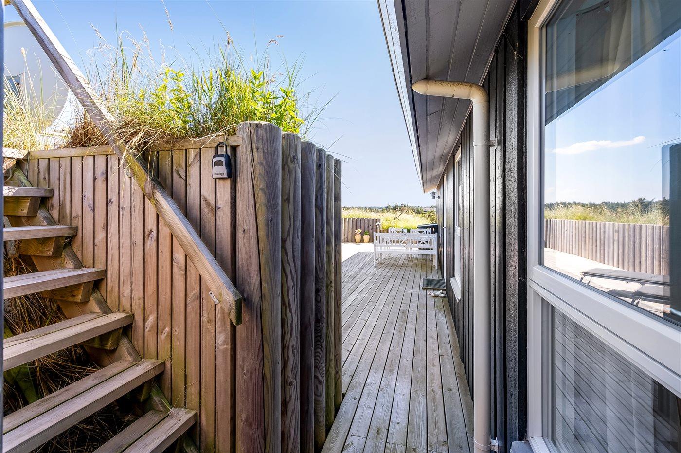 Die Ferienunterkunft liegt auf einem 1400 m² großen Dünengrundstück. Die Entfernung zum Meer beträgt 400 m. Die nächste Einkaufsmöglichkeit liegt 900 m entfernt. In einem Abstand von 4500 m gibt es einen Golfplatz. Es steht ein offenes Terrassenareal zur Verfügung. Außerdem gibt es überdachte Terrasse. Geräteraum. Die Entfernung zu einem Spielplatz beträgt 1500 m. Außendusche. Es beteht die Möglichkeit das Essen in der Außenküche zuzubereiten. Es steht ein Grill zur Verfügung. Parkplatz auf dem Grundstück.