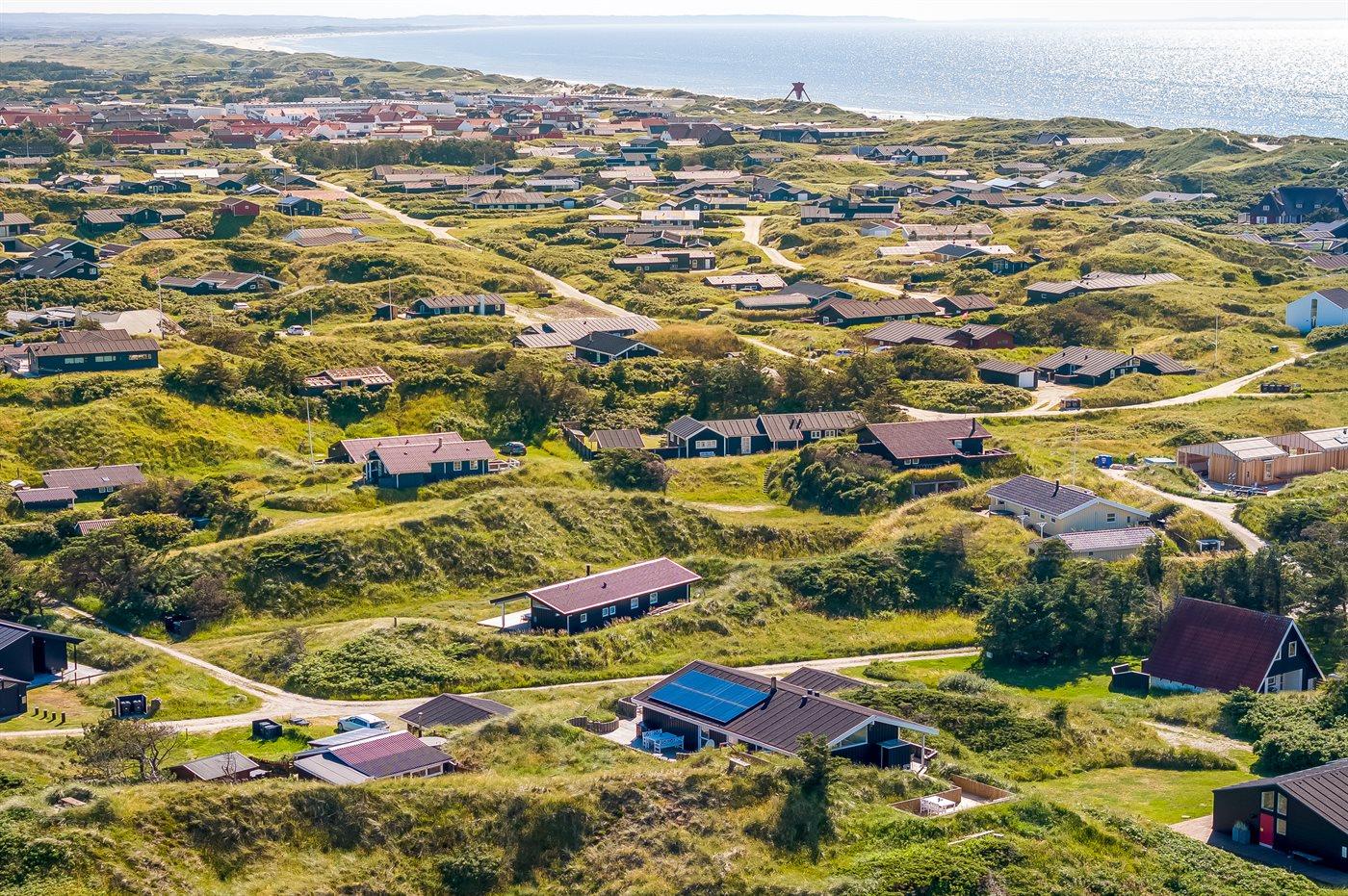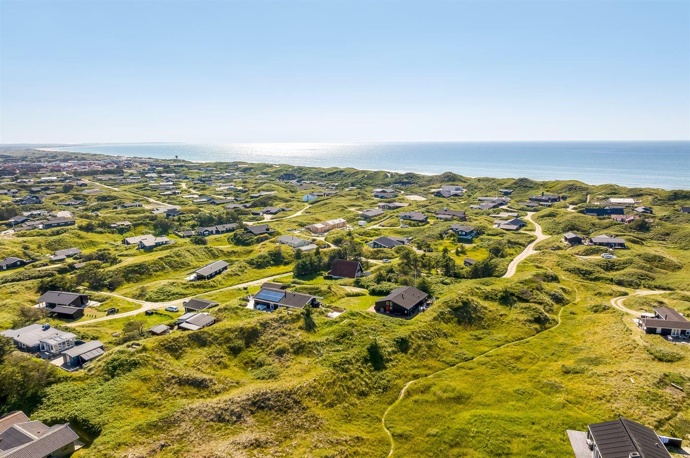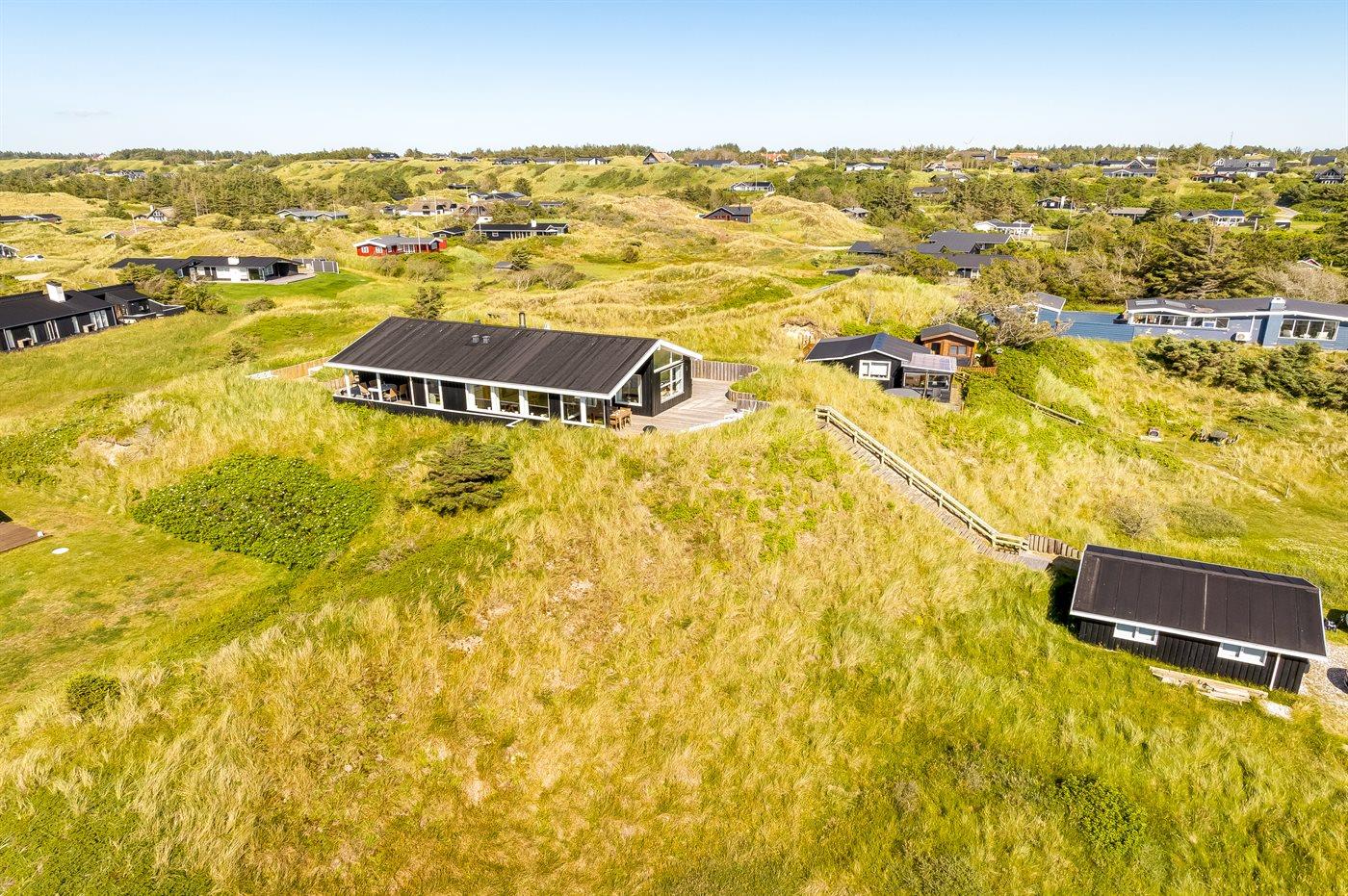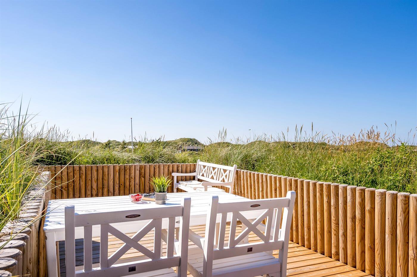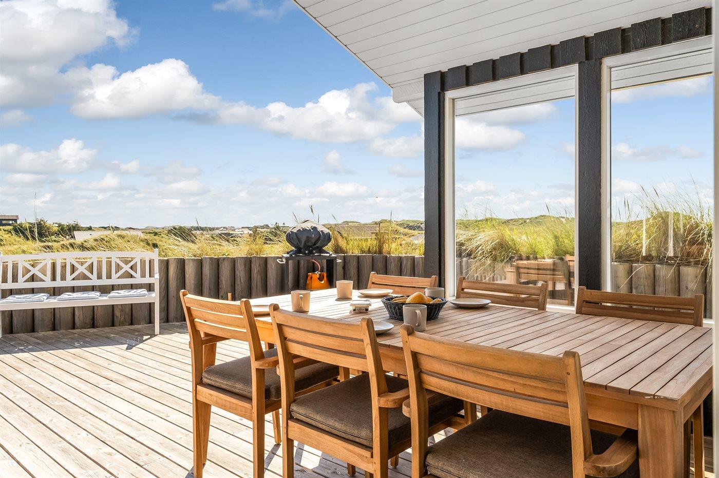 Auf dem höchsten Punkt eines hügeligen Dünengrundstücks, nahe am Strand von Blokhus, findest du dieses schöne Ferienhaus. Zum Haus gehören sowohl eine offene als auch eine überdachte Terrasse, von der aus du einen tollen Blick auf die Dünen und die Umgebung hast. Es gibt auch eine in Richtung Osten ausgerichtete Morgenterrasse und eine erhöhte Terrasse hinter dem Haus, von der aus man das Meer ahnen und den Sonnenuntergang sowie das gemütliche Beisammensein genießen kann.