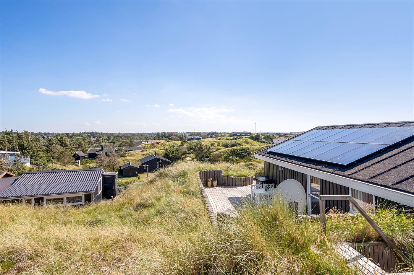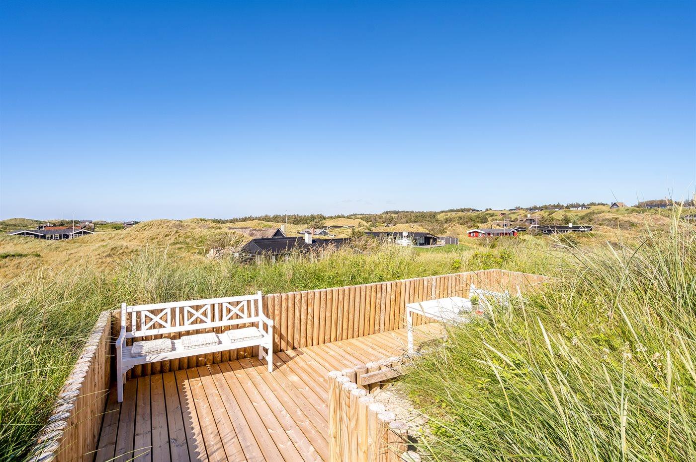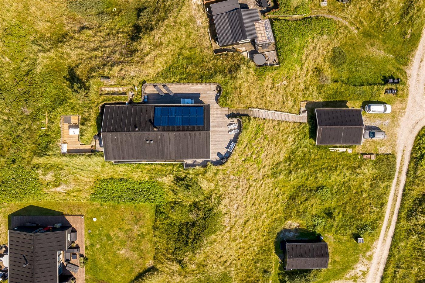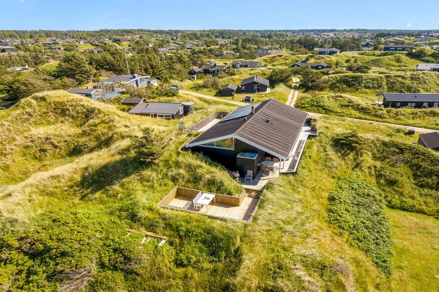 Auf dem höchsten Punkt eines hügeligen Dünengrundstücks, nahe am Strand von Blokhus, findest du dieses schöne Ferienhaus. Zum Haus gehören sowohl eine offene als auch eine überdachte Terrasse, von der aus du einen tollen Blick auf die Dünen und die Umgebung hast. Es gibt auch eine in Richtung Osten ausgerichtete Morgenterrasse und eine erhöhte Terrasse hinter dem Haus, von der aus man das Meer ahnen und den Sonnenuntergang sowie das gemütliche Beisammensein genießen kann.