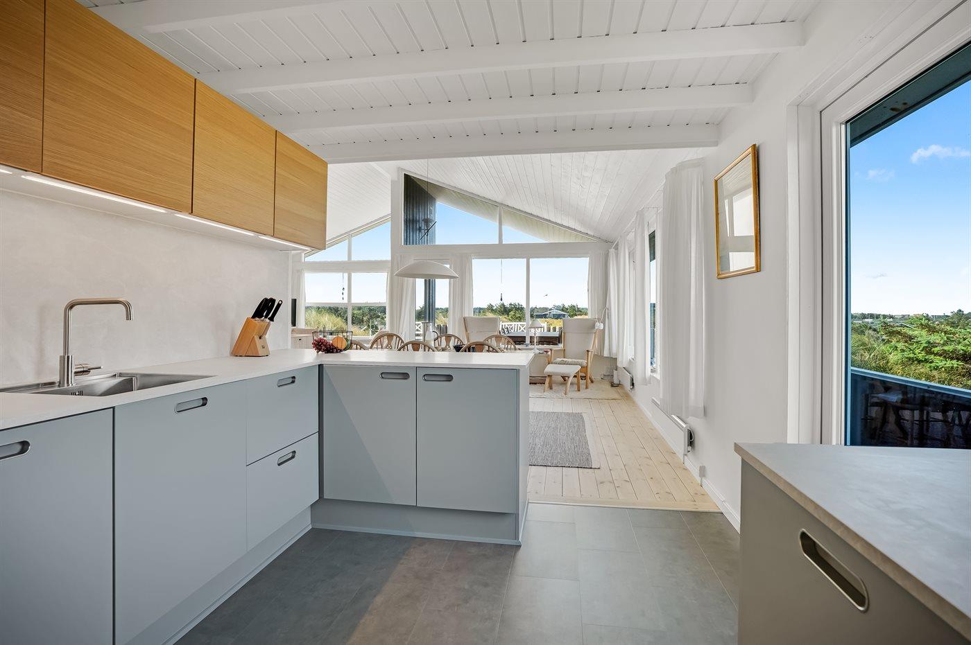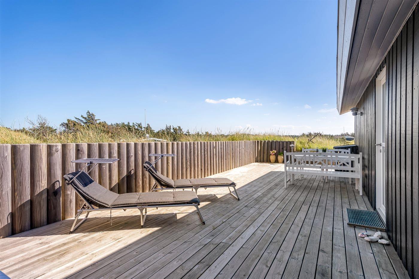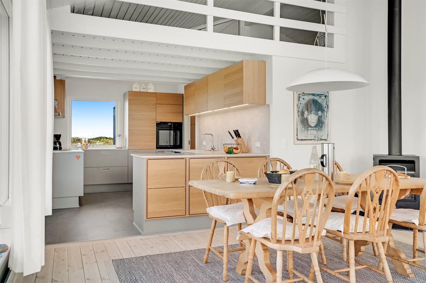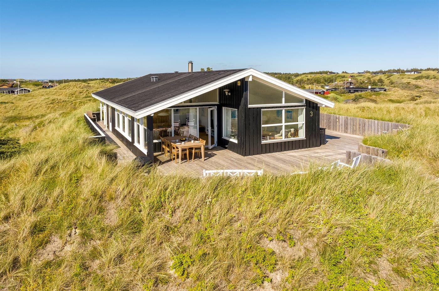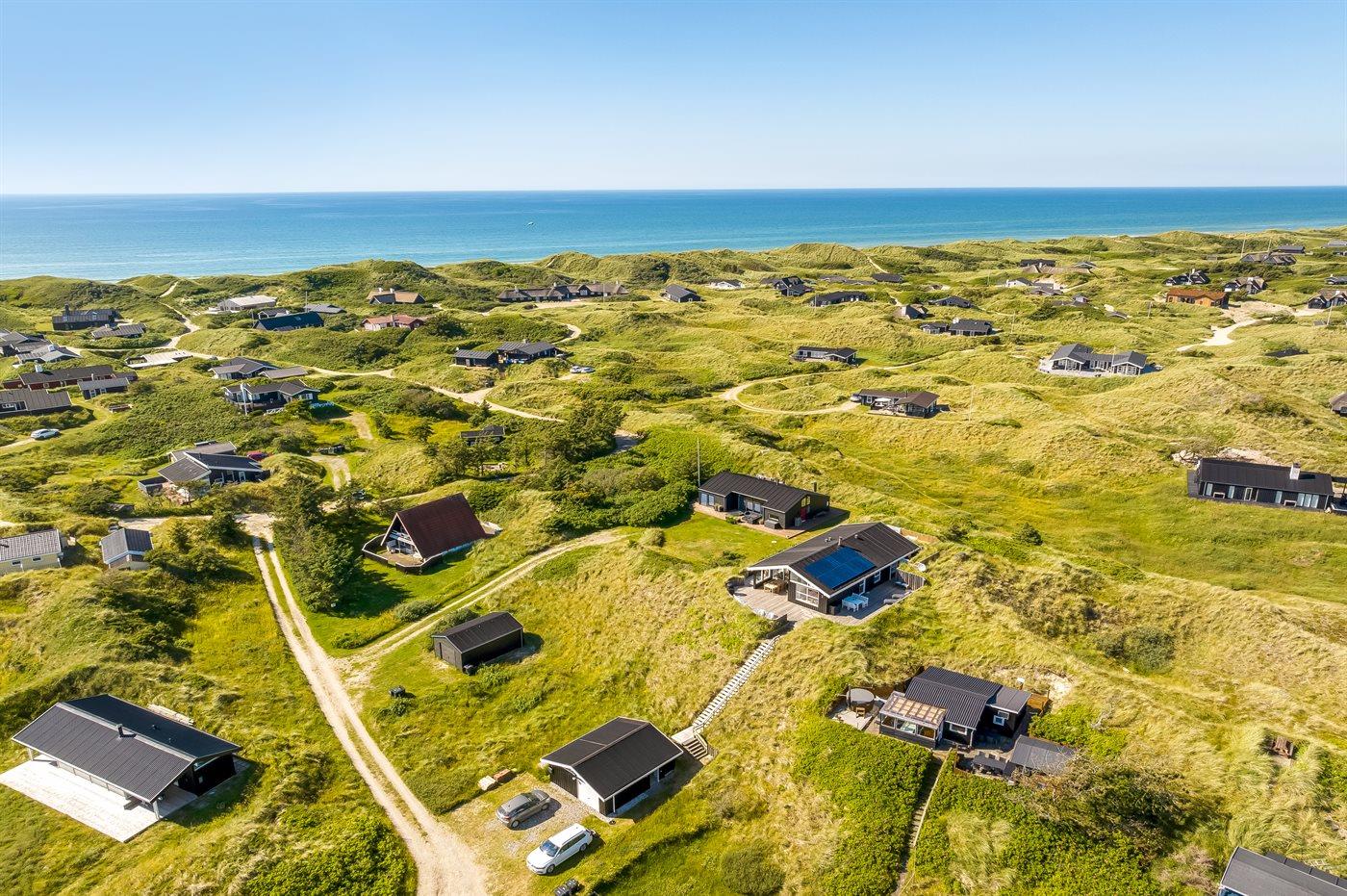 Auf dem höchsten Punkt eines hügeligen Dünengrundstücks, nahe am Strand von Blokhus, findest du dieses schöne Ferienhaus. Zum Haus gehören sowohl eine offene als auch eine überdachte Terrasse, von der aus du einen tollen Blick auf die Dünen und die Umgebung hast. Es gibt auch eine in Richtung Osten ausgerichtete Morgenterrasse und eine erhöhte Terrasse hinter dem Haus, von der aus man das Meer ahnen und den Sonnenuntergang sowie das gemütliche Beisammensein genießen kann.