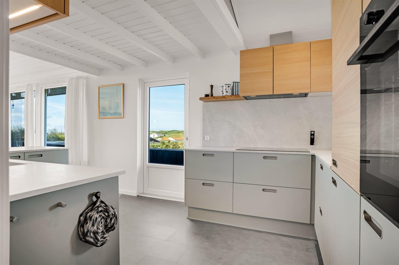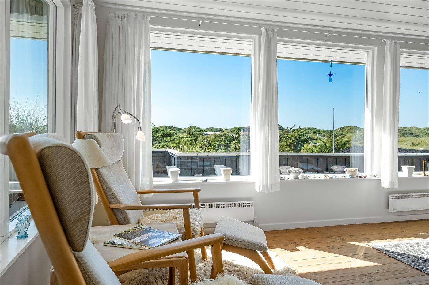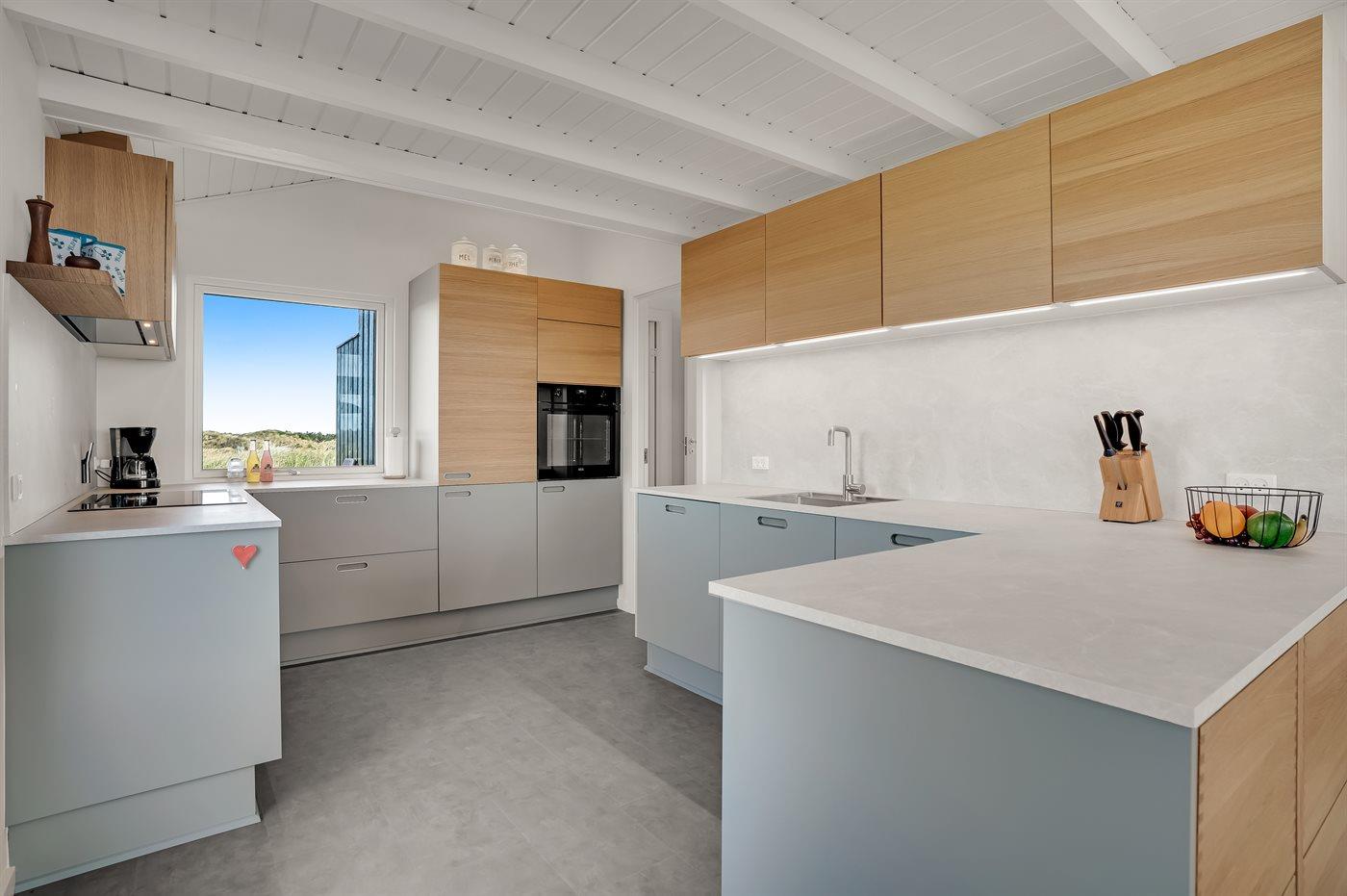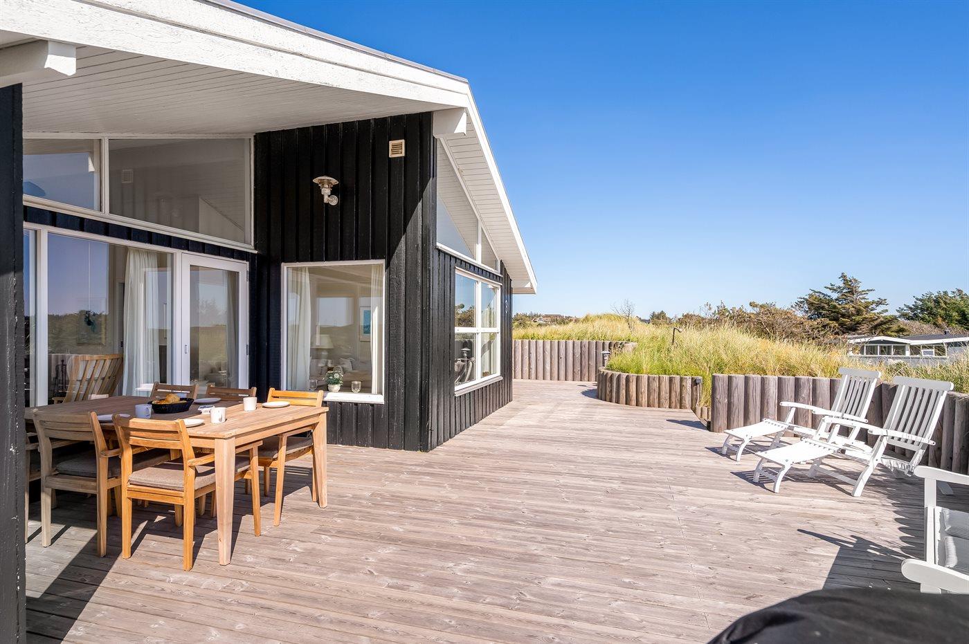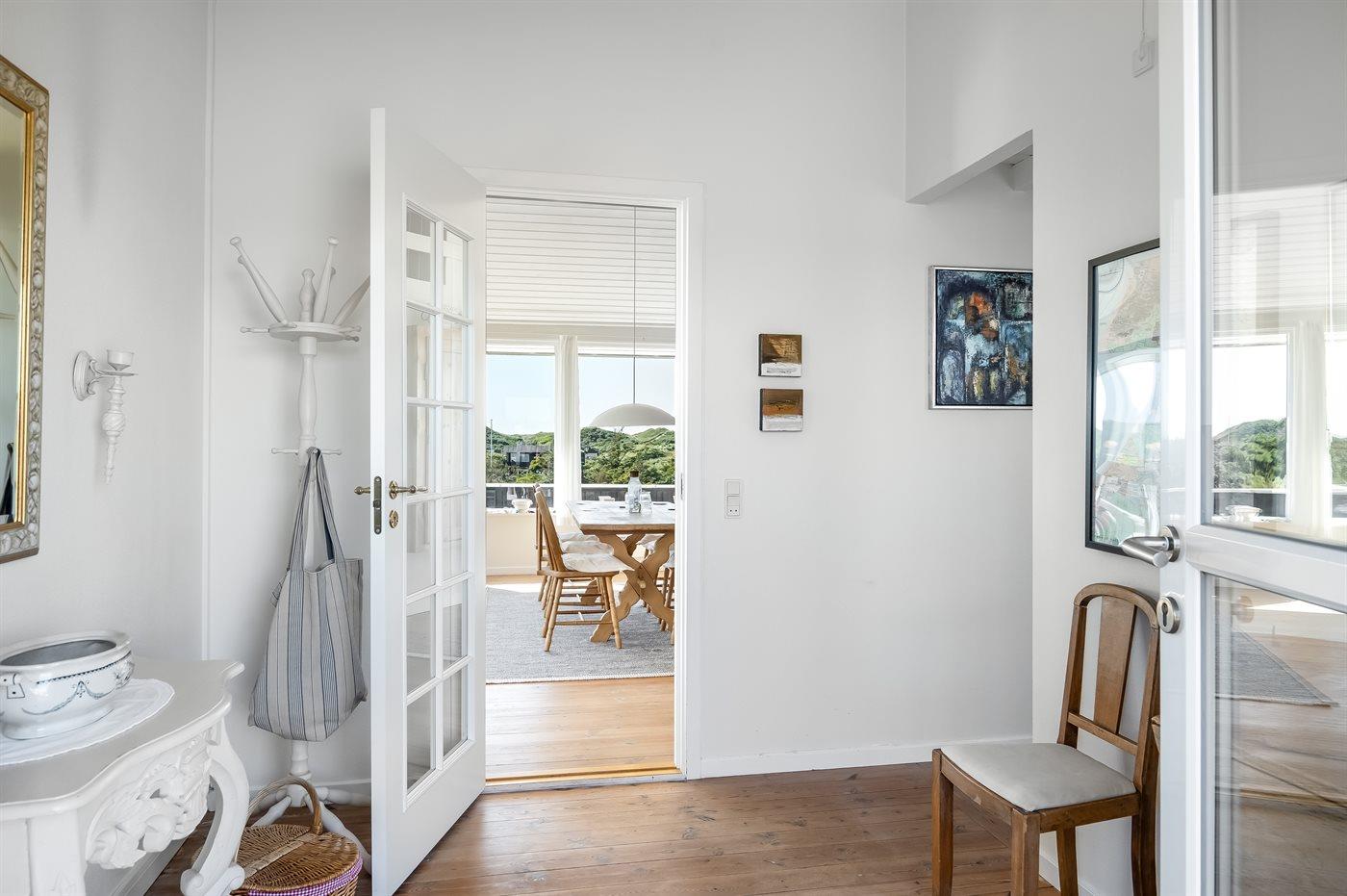 Auf dem höchsten Punkt eines hügeligen Dünengrundstücks, nahe am Strand von Blokhus, findest du dieses schöne Ferienhaus. Zum Haus gehören sowohl eine offene als auch eine überdachte Terrasse, von der aus du einen tollen Blick auf die Dünen und die Umgebung hast. Es gibt auch eine in Richtung Osten ausgerichtete Morgenterrasse und eine erhöhte Terrasse hinter dem Haus, von der aus man das Meer ahnen und den Sonnenuntergang sowie das gemütliche Beisammensein genießen kann.