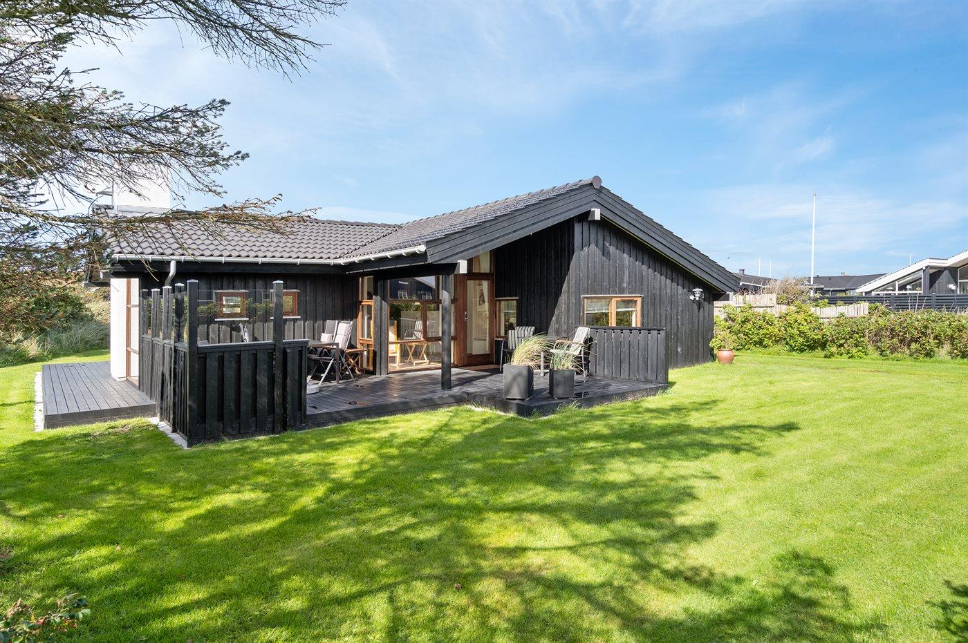 Ein besonders schönes Ferienhaus mit einer zentralen Lage - dicht an der Ortsmitte vom Badeort Blokhus, aber dennoch in ruhiger Umgebung. Einer der besten Badestrände Dänemarks liegt nur 200 m vom Haus entfernt.