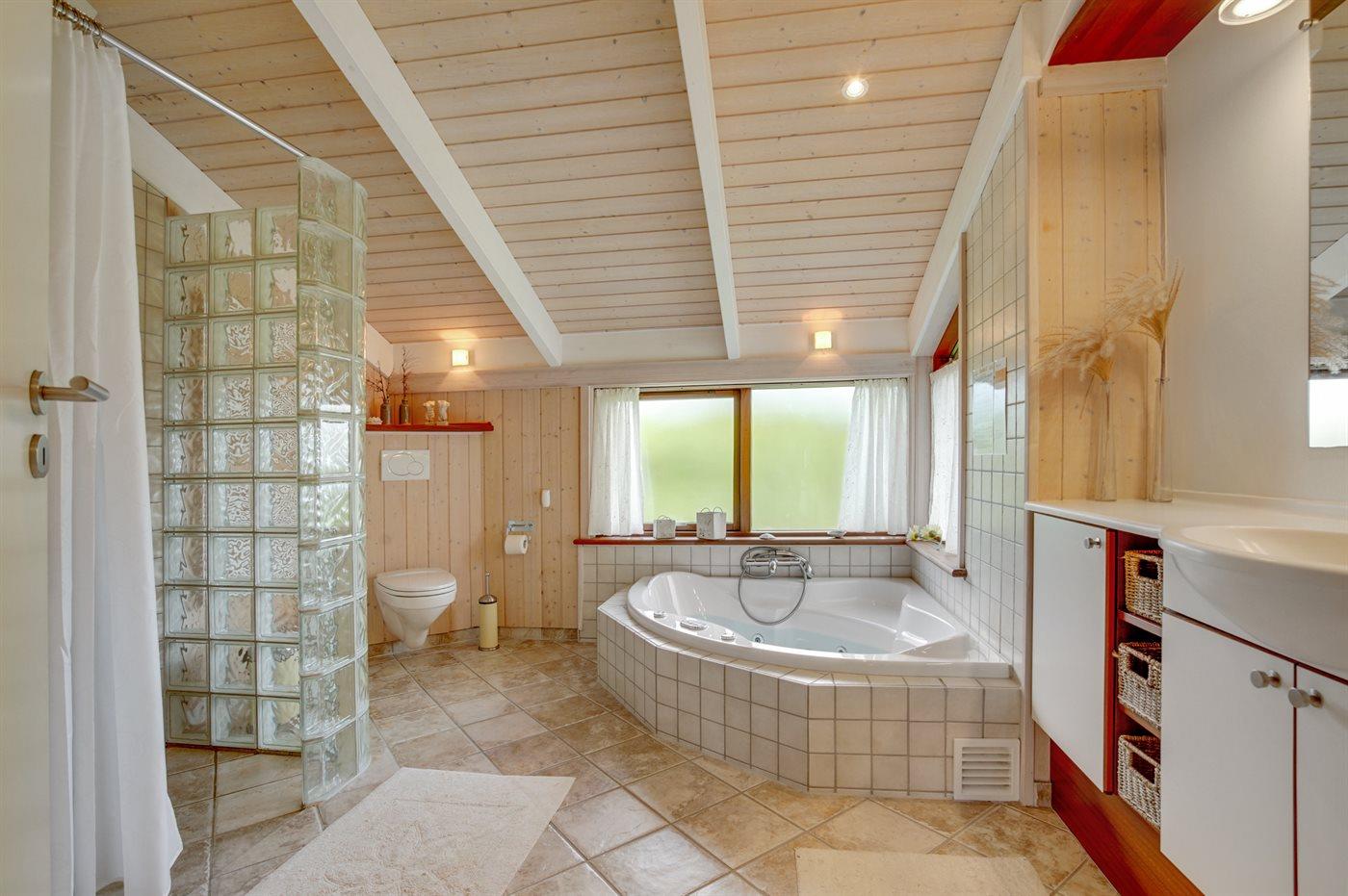 Es gibt 2 Badezimmer mit Duschnische und 2 Toiletten. Fußbodenheizung in 2 Badezimmern. Es steht eine Sauna zur Verfügung in der Sie sich so richtig entspannen können.