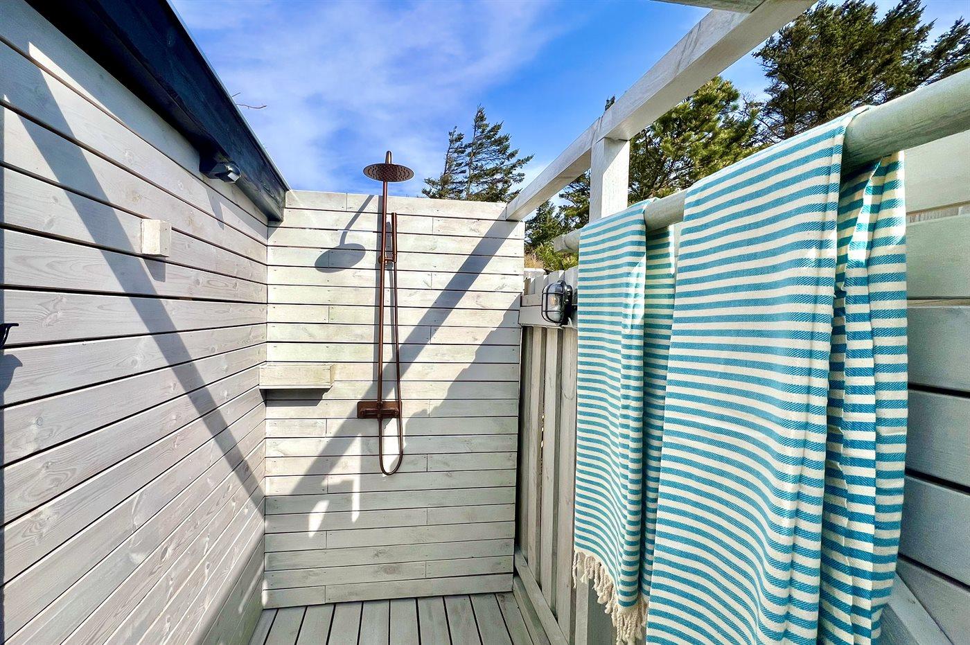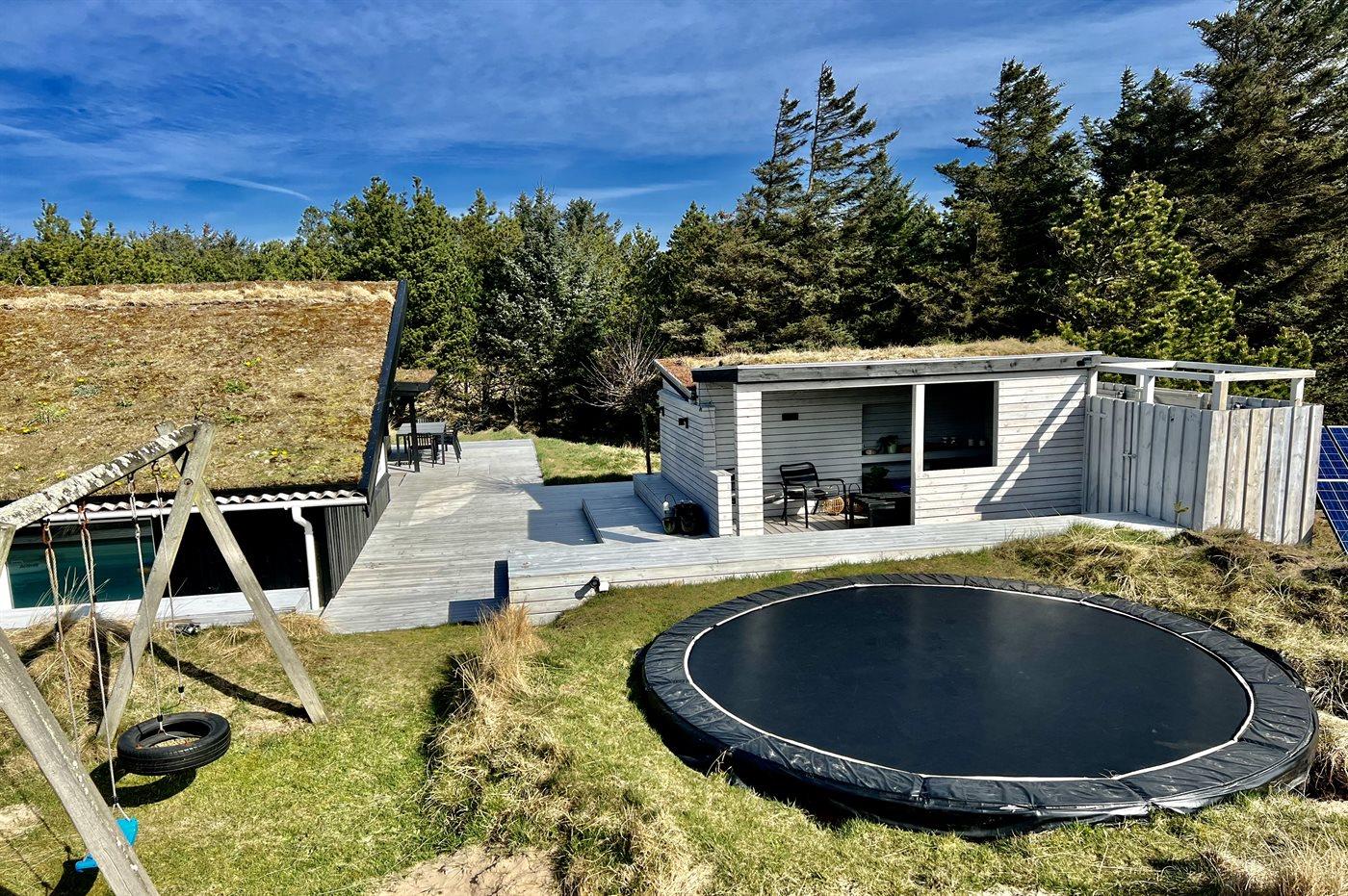 Die Ferienunterkunft liegt auf einem 2600 m² großen Naturgrundstück. Die Entfernung zum Meer beträgt 1400 m. Die nächste Einkaufsmöglichkeit liegt 2500 m entfernt. Es steht ein 40 m² Terrassenareal zur Verfügung. Außerdem gibt es 10 m² überdachte Terrasse. Schaukel. Eingegrabenes Trampolin. Außendusche verfügbar von Woche 13 bis Woche 43. Es ist ein Ladestecker für Elektroautos installiert.