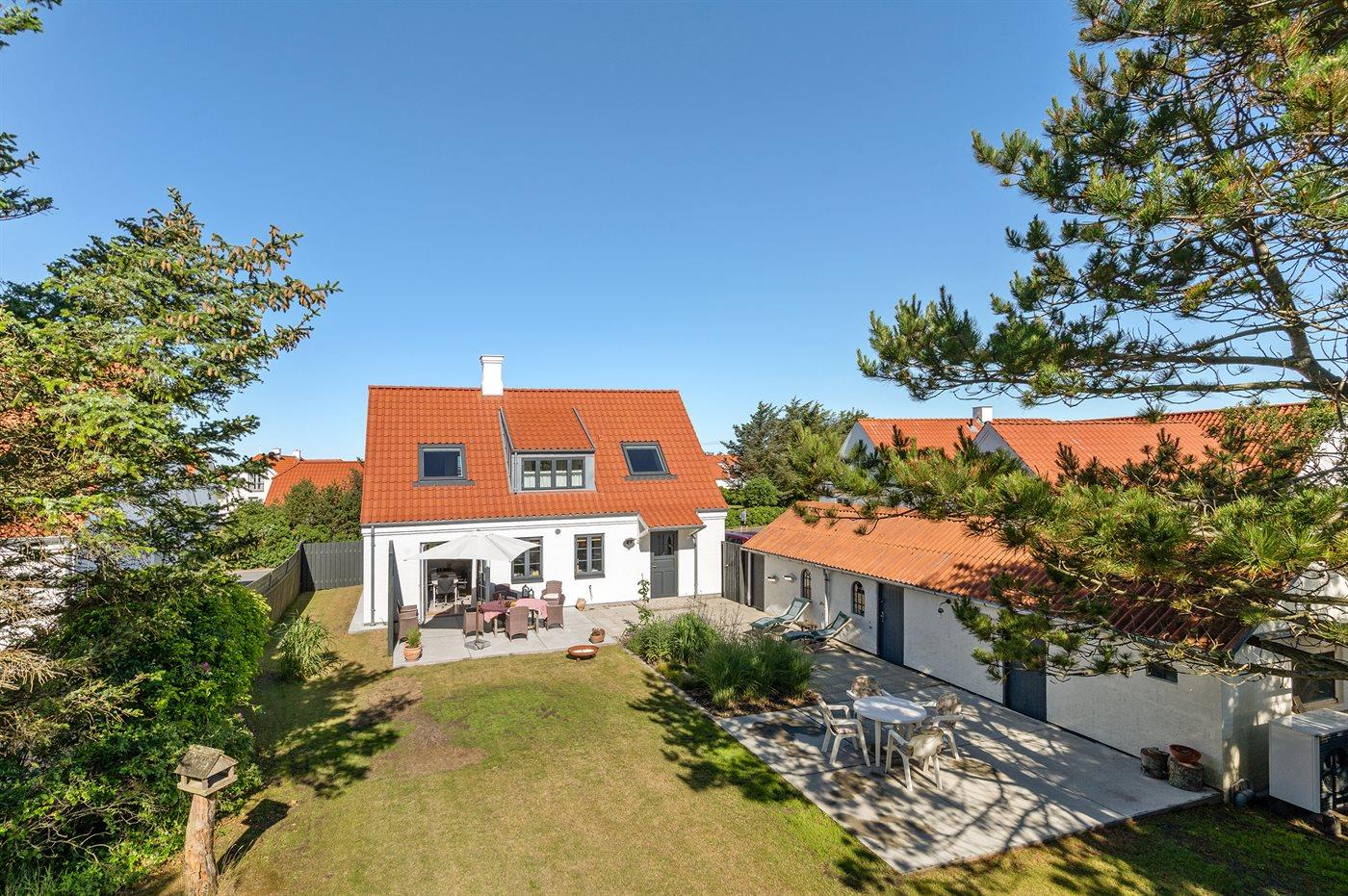 Dieses schöne und geräumige Ferienhaus, 2020 gebaut, liegt auf einem abgeschirmten Grundstück - im Gehabstand von der Stadtmitte in Blokhus entfernt.