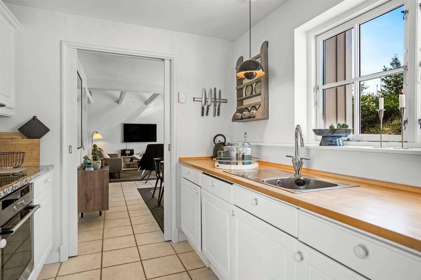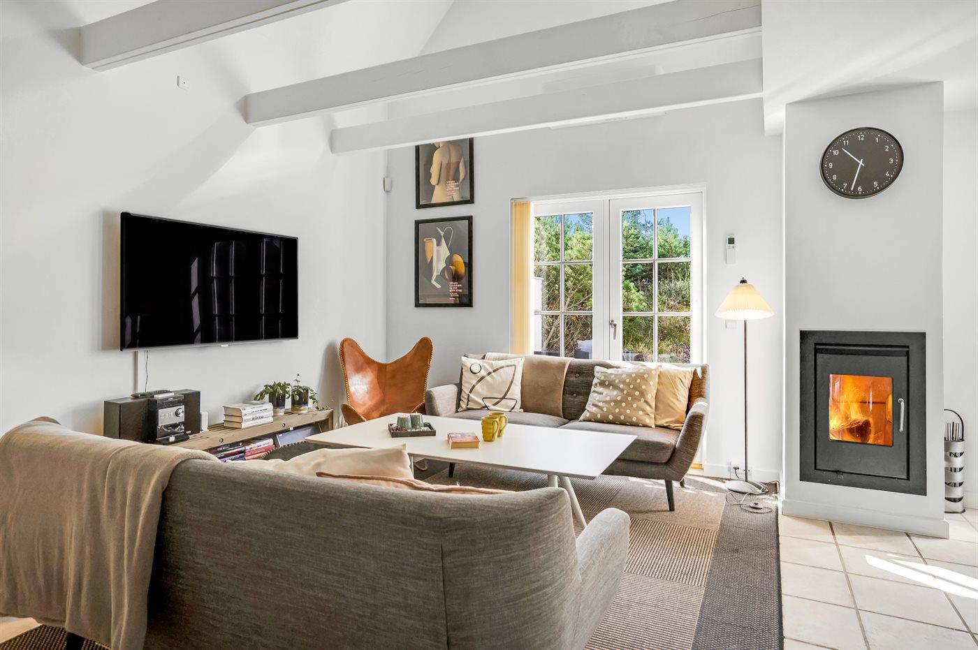 Südlich der Stadtmitte des Ferienorts Blokhus, in einem hügeligen Naturgebiet und dicht am Wald liegt dieses schönes Ferienhaus. Das Haus ist als Teil einer Ferienhaussiedlung mit gemeinsamem Spielplatz und Multibahn (Tennis, Handball, Basketball, Hockey und Fußball) aufgeführt. Das Haus ist hell und freundlich eingerichtet mit einer guten Lage - der Wald, der Strand und die Stadt können zu Fuß erreicht werden. Das Haus ist mit einem offenen Obergeschoss mit 3 möglichen Schlafplätzen eingerichtet.