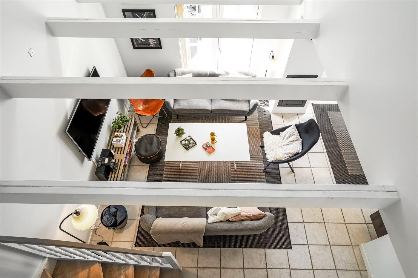Die Schlafplätze verteilen sich auf 4 Schlafräume. 6 Schlafplätze in Doppelbetten. 2 Schlafplätze auf einer Doppelschlafcouch. 3 Schlafplätze auf Matratzen. 3 von diesen Schlafplätzen befinden sich im offenen Obergeschoss.