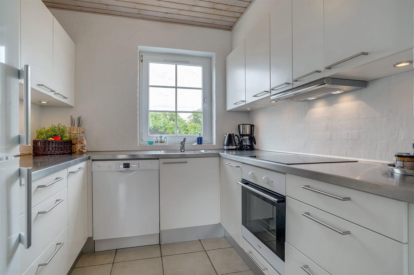 Die Küche ist mit Kühlschrank ausgestattet. Außerdem gibt es 4 Keramik-Kochfelder, Umluftofen sowie Geschirrspüler.