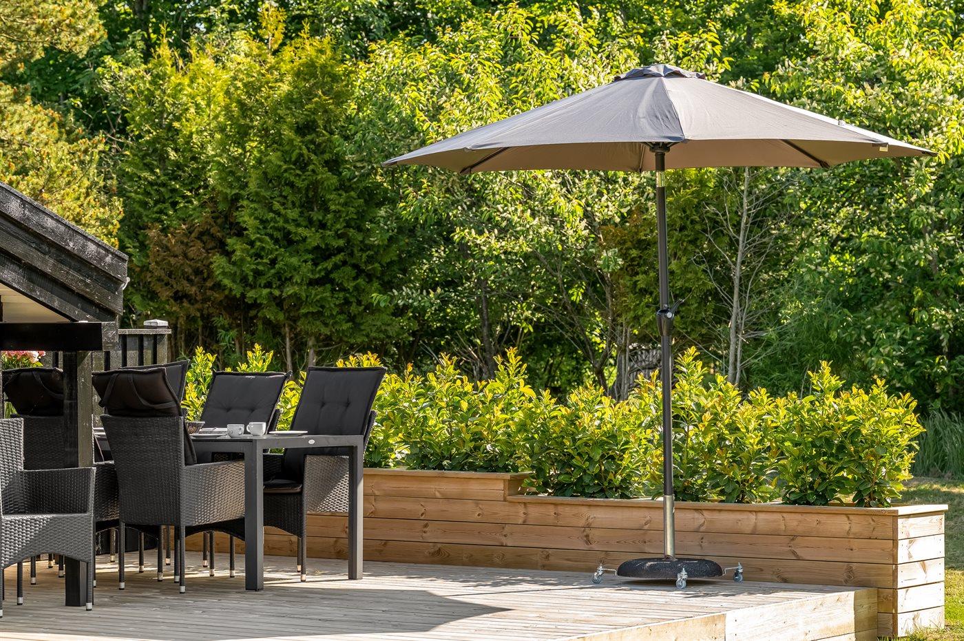 Die Ferienunterkunft liegt auf einem 1650 m² großen Naturgrundstück. Die Entfernung zum Meer beträgt 2200 m. Die nächste Einkaufsmöglichkeit liegt 700 m entfernt. In einem Abstand von 4000 m gibt es einen Golfplatz. Es steht ein 20 m² Terrassenareal zur Verfügung. Außerdem gibt es 10 m² überdachte Terrasse. Trampolin. Fußballtor. Es steht ein Grill zur Verfügung. Parkplatz auf dem Grundstück.